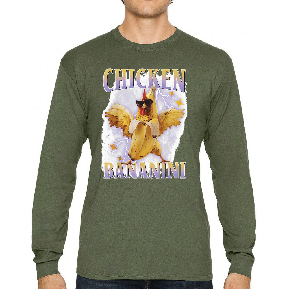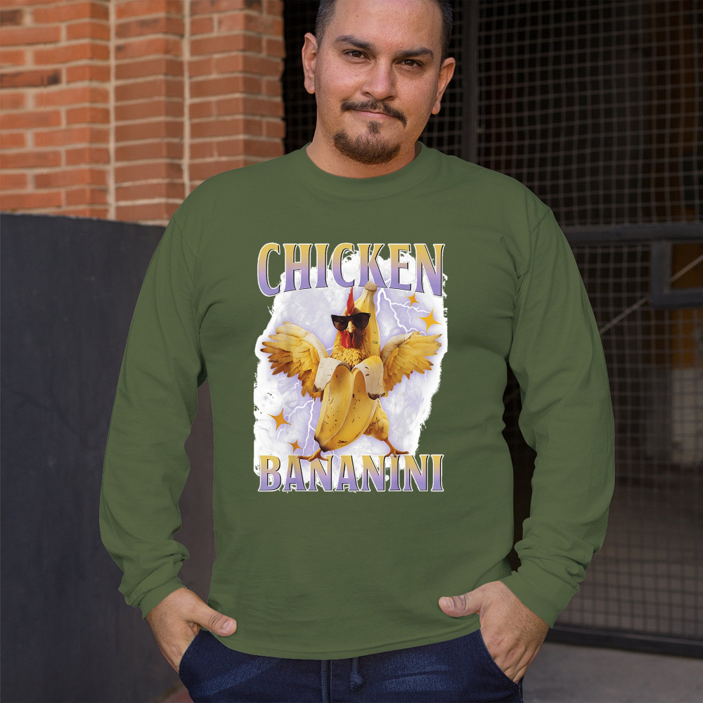 Chicken Bananini is meme absurdity with extra peel. Featuring a chicken emerging from a banana and rocking shades, this design blends cursed-core fashion, viral animal humor, Gen Z brainrot, and TikTok-style chaos. A must-have for fans of ironic mashups, surreal creatures, and internet-fueled nonsense.