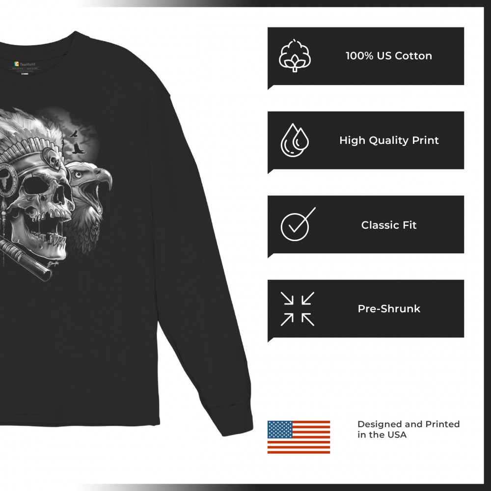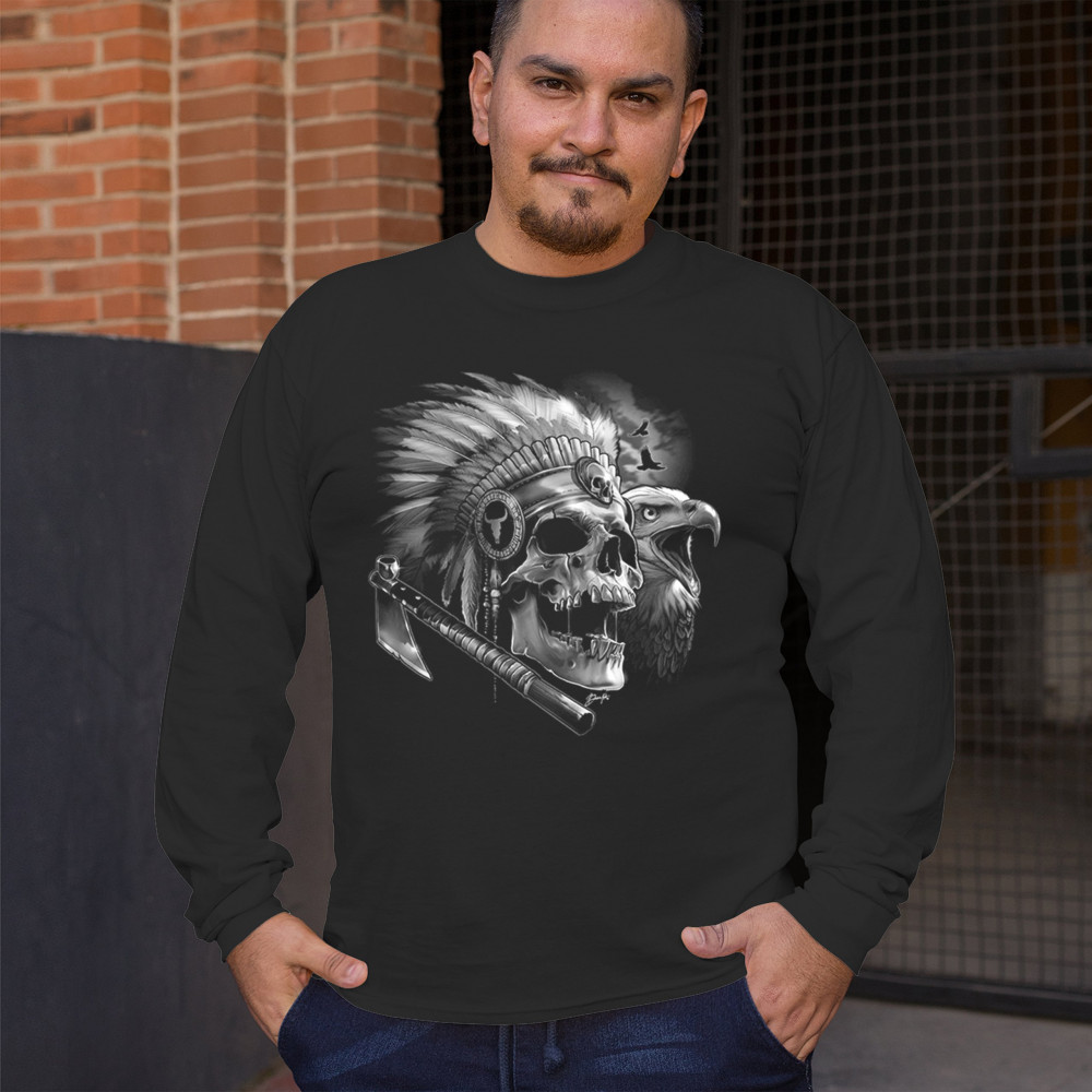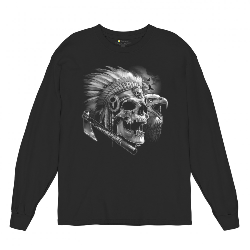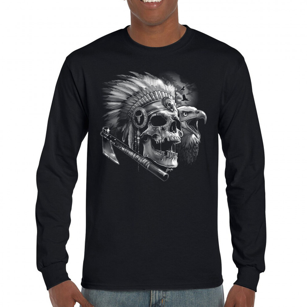 CHIEF SKULL EAGLE long sleeve t-shirt patriotic freedom us america pride indian black