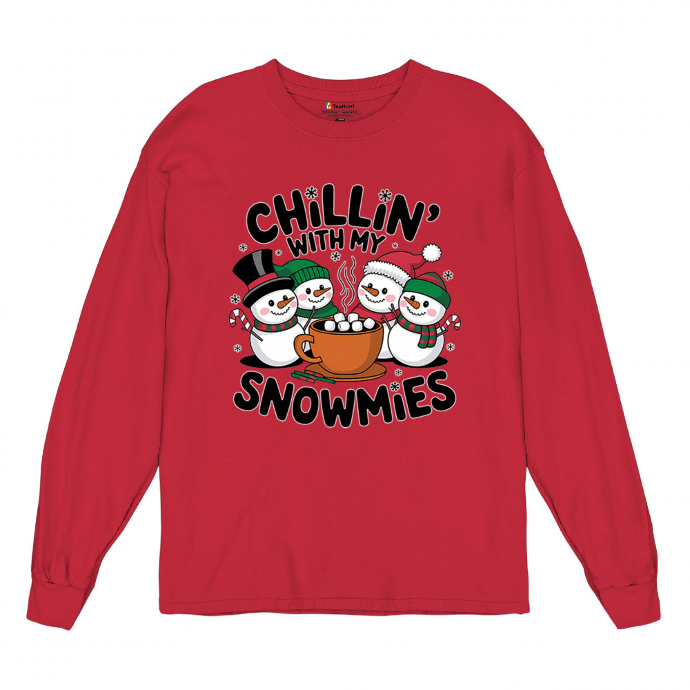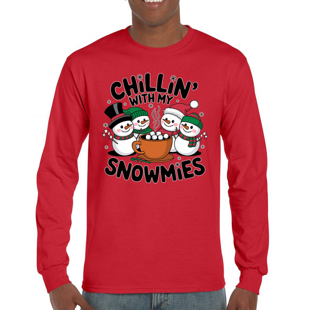 A cute and cheerful winter design showing happy snowmen sharing hot cocoa, perfect for Christmas gatherings, holiday events, seasonal photos, white-elephant gifting, festive family nights, winter celebrations, cozy weekend vibes, and fans of playful holiday humor. A fun graphic for anyone who loves bright and friendly Christmas styles.