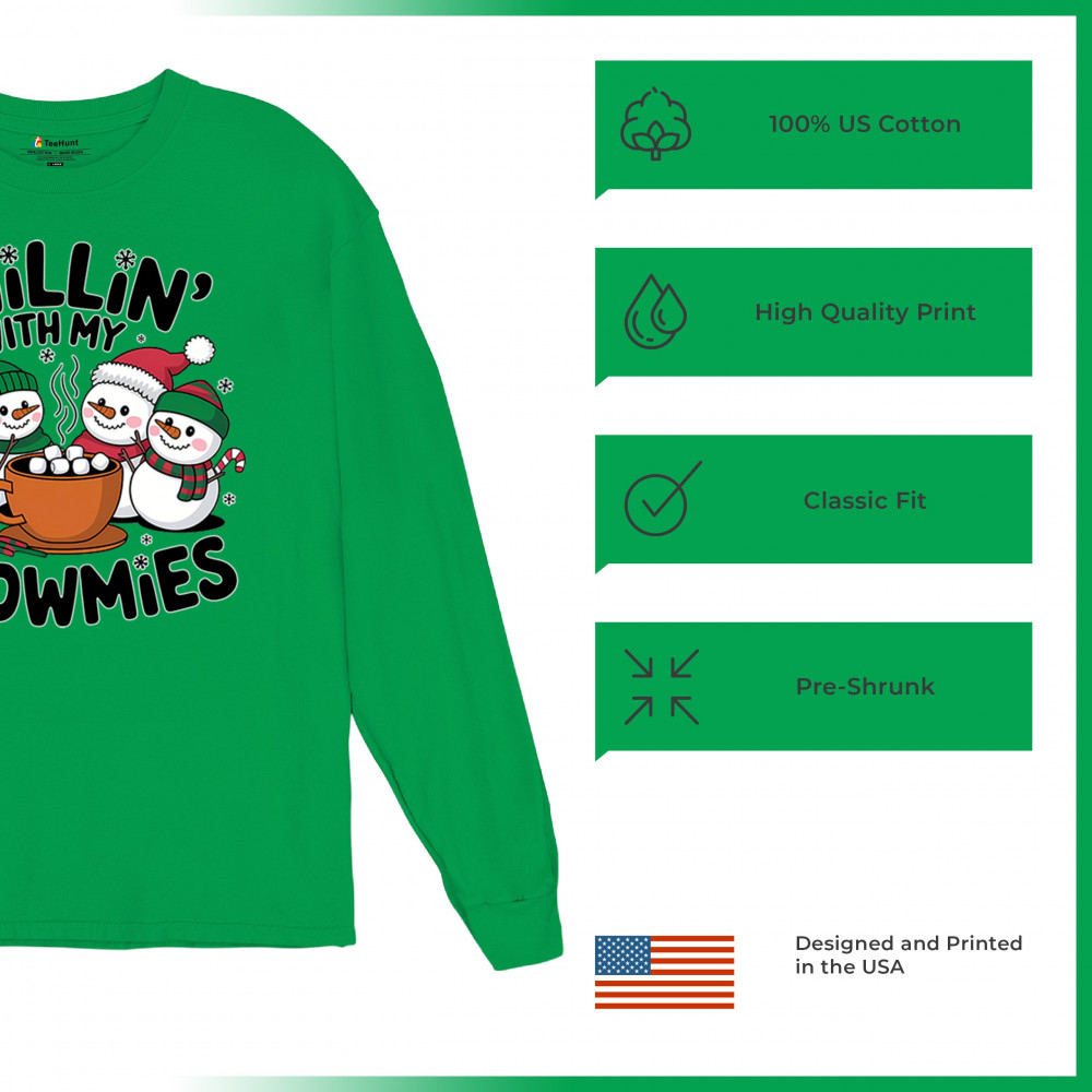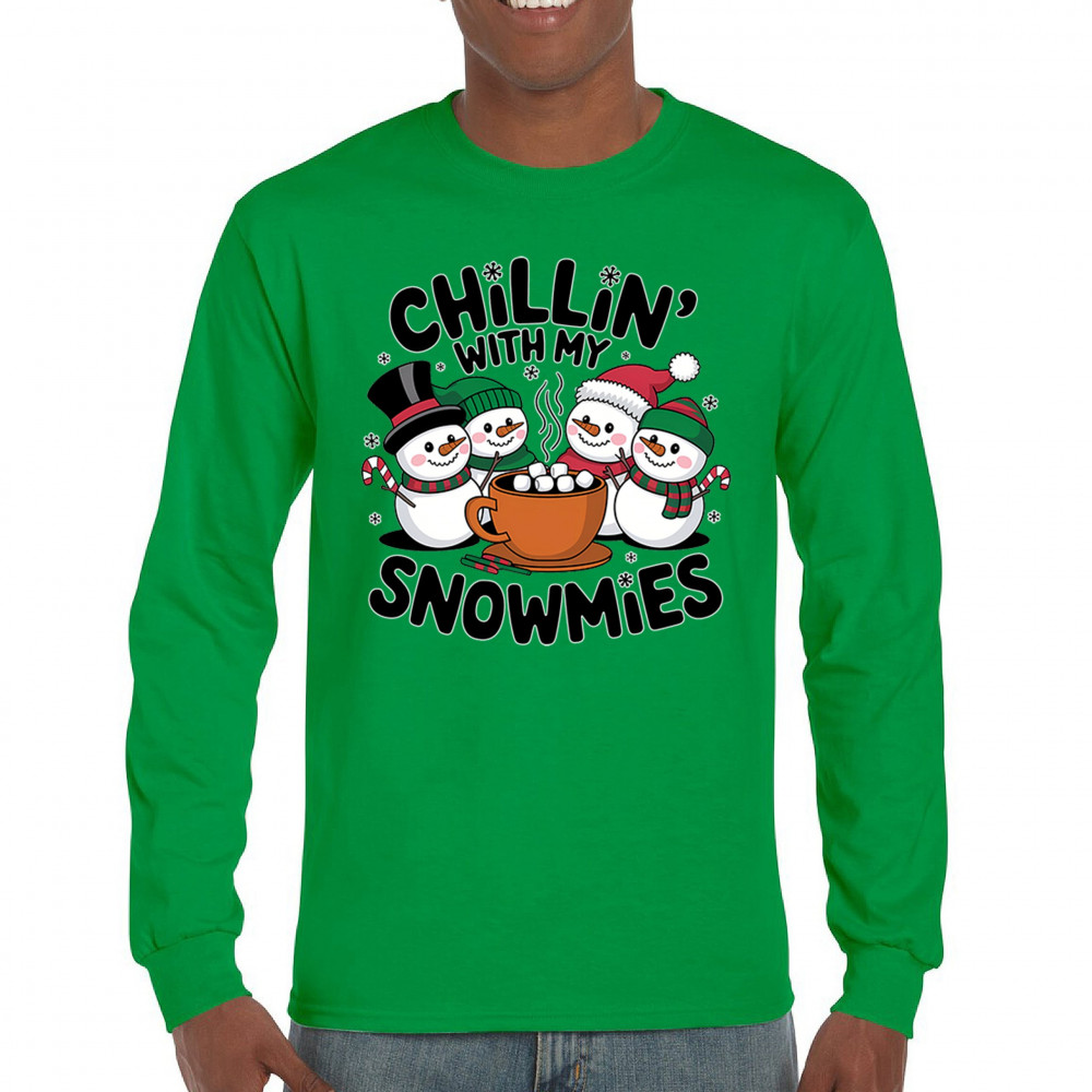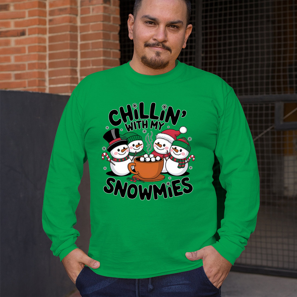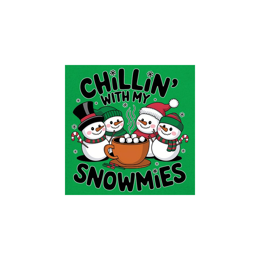 A cute and cheerful winter design showing happy snowmen sharing hot cocoa, perfect for Christmas gatherings, holiday events, seasonal photos, white-elephant gifting, festive family nights, winter celebrations, cozy weekend vibes, and fans of playful holiday humor. A fun graphic for anyone who loves bright and friendly Christmas styles.