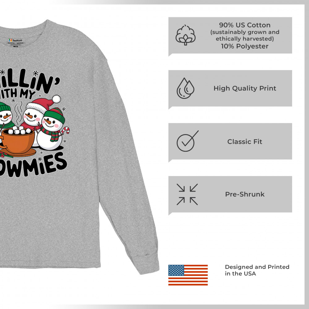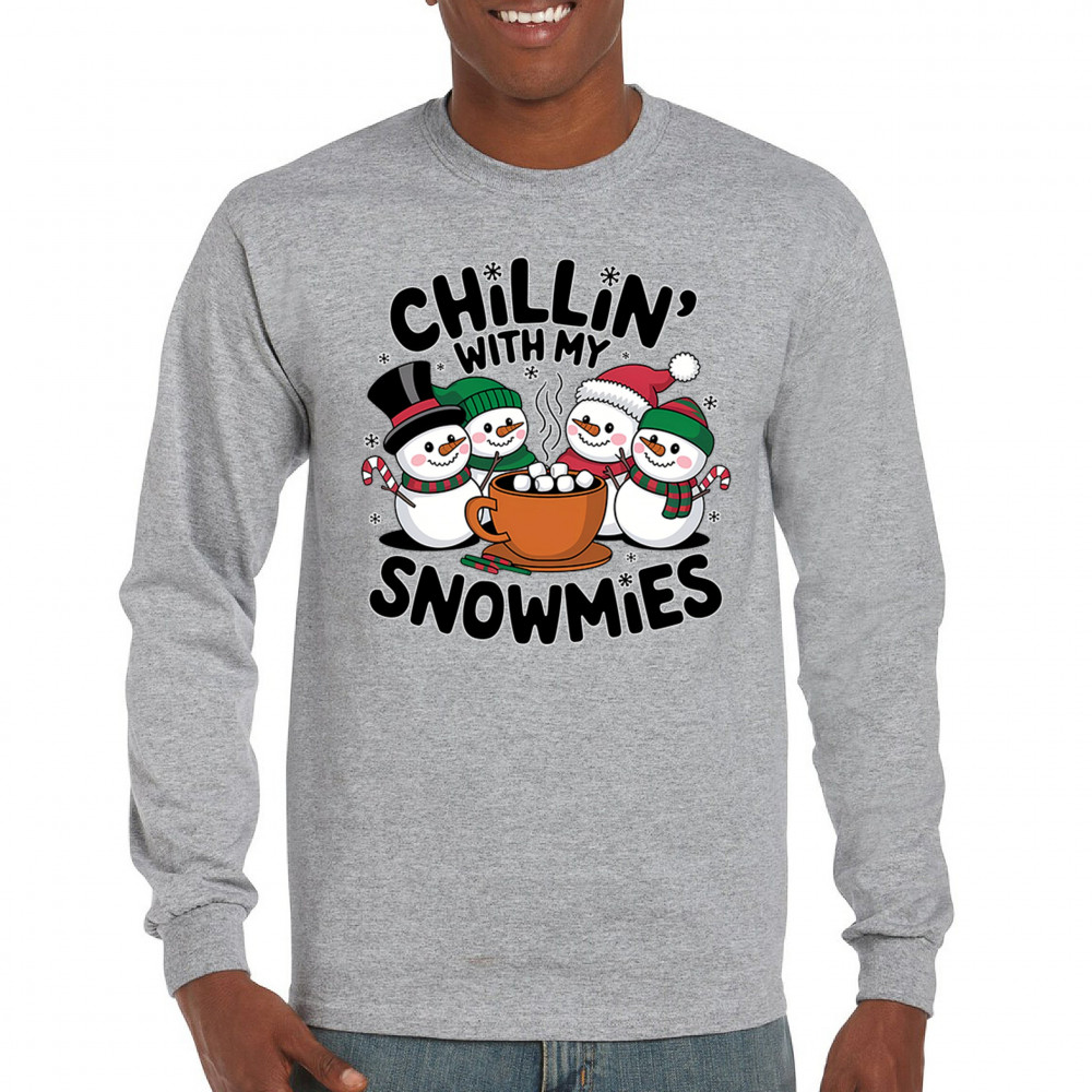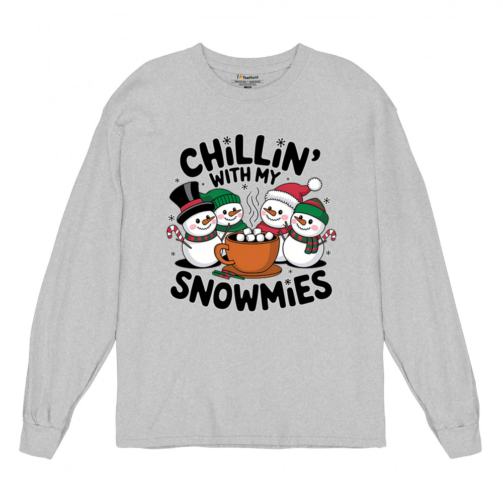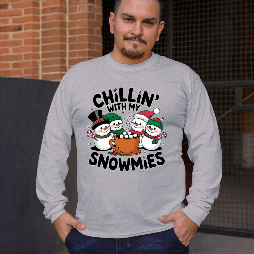 A cute and cheerful winter design showing happy snowmen sharing hot cocoa, perfect for Christmas gatherings, holiday events, seasonal photos, white-elephant gifting, festive family nights, winter celebrations, cozy weekend vibes, and fans of playful holiday humor. A fun graphic for anyone who loves bright and friendly Christmas styles.