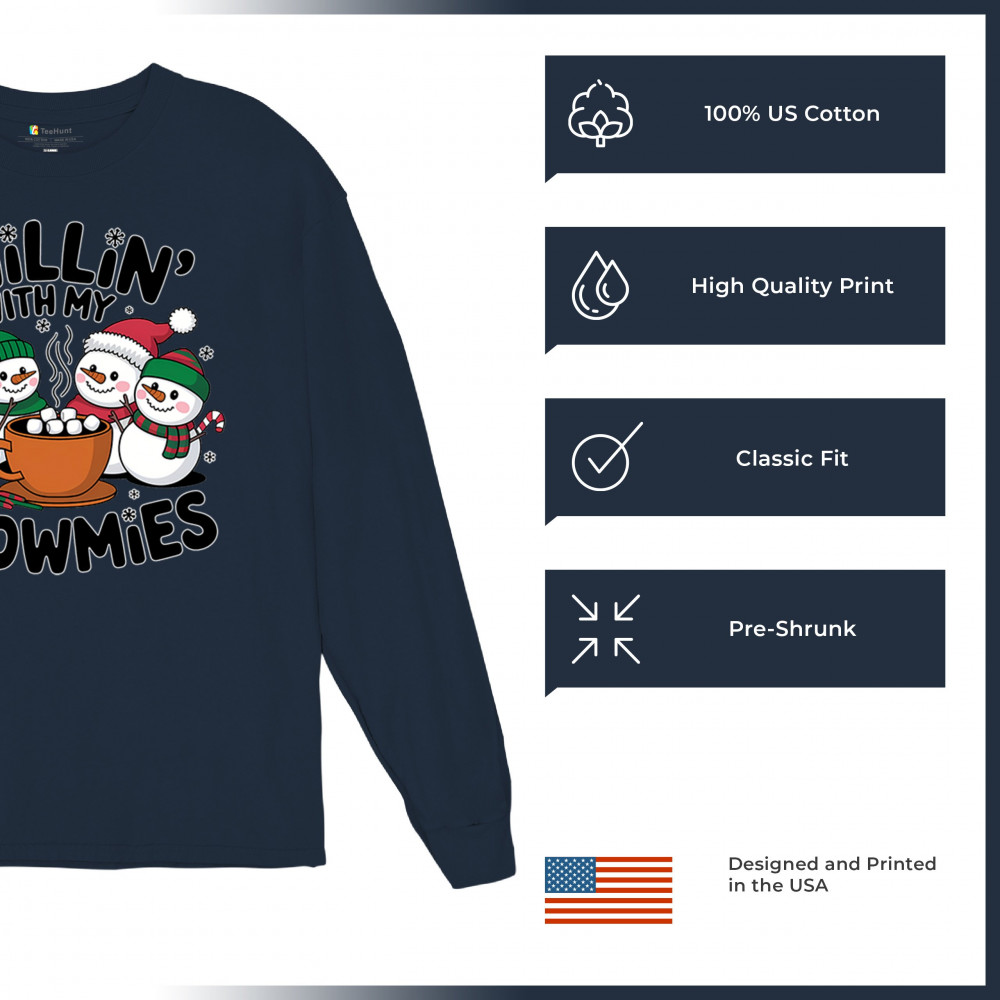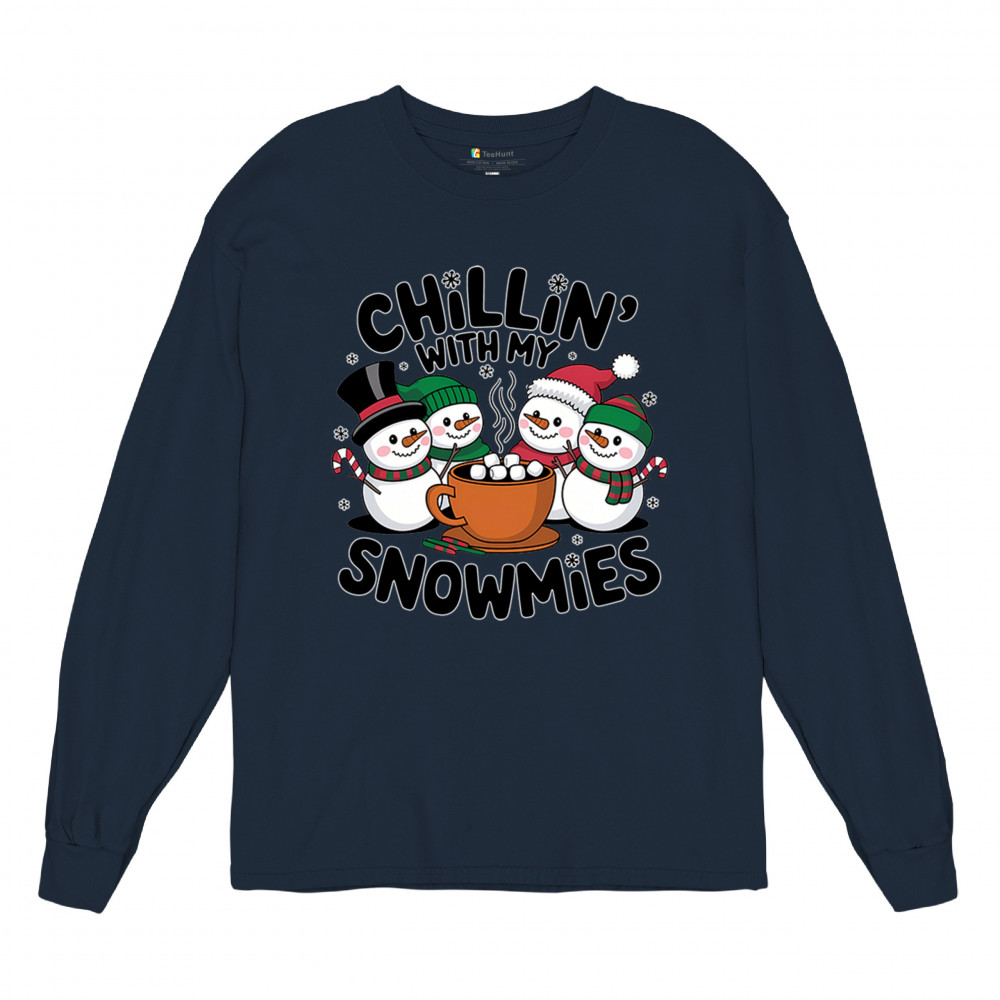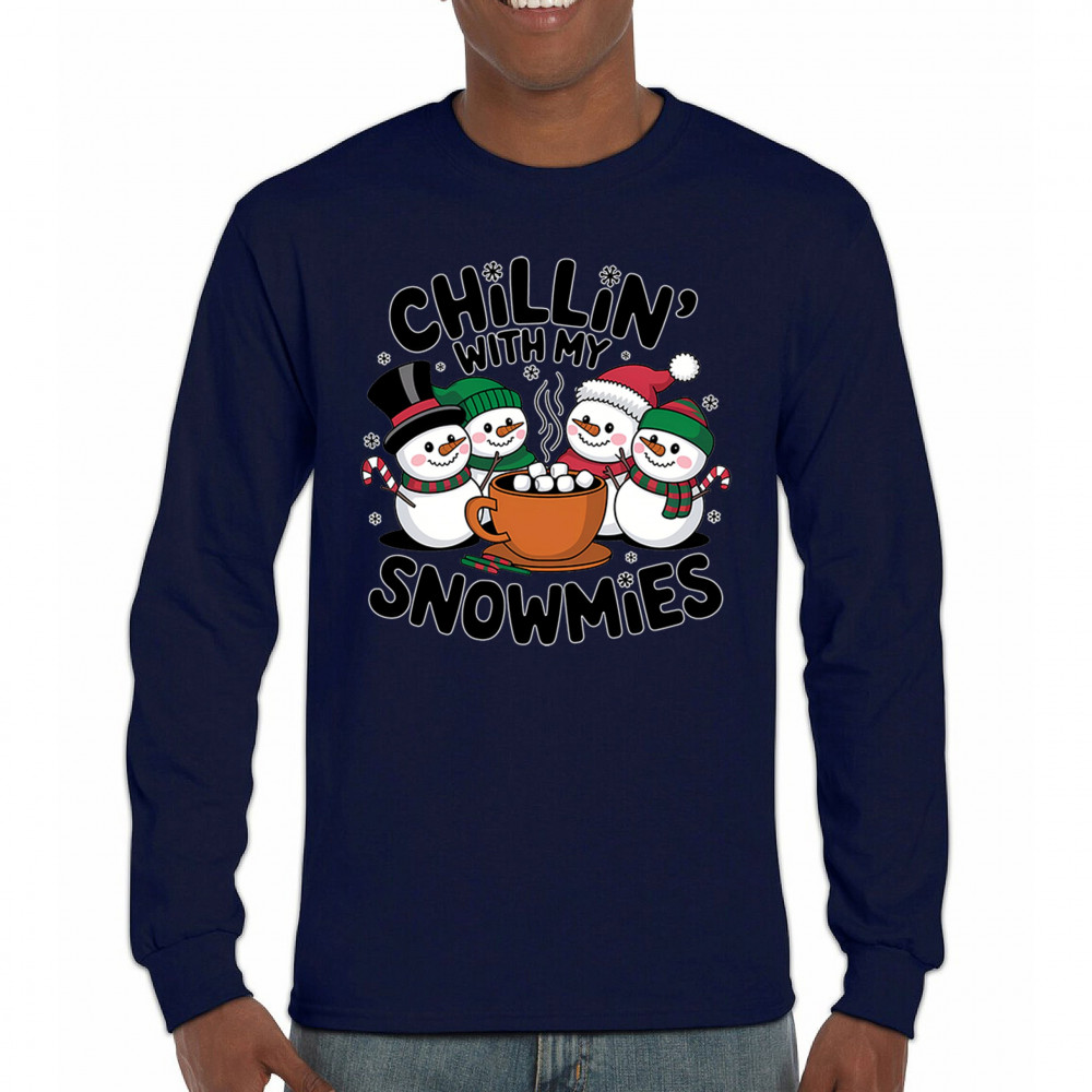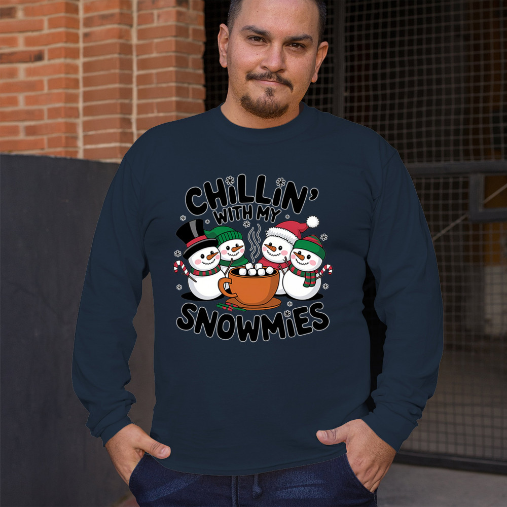 A cute and cheerful winter design showing happy snowmen sharing hot cocoa, perfect for Christmas gatherings, holiday events, seasonal photos, white-elephant gifting, festive family nights, winter celebrations, cozy weekend vibes, and fans of playful holiday humor. A fun graphic for anyone who loves bright and friendly Christmas styles.
