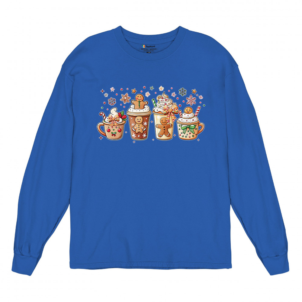 This cute Christmas drink design showcases gingerbread mugs, whipped cream, candy canes, sprinkles, and festive decorations for a warm winter aesthetic. Perfect for cocoa lovers, coffee fans, bakers, cozy holiday nights, gift exchanges, Christmas morning vibes, seasonal parties, and anyone who loves adorable dessert-inspired holiday art.