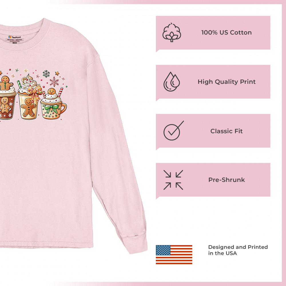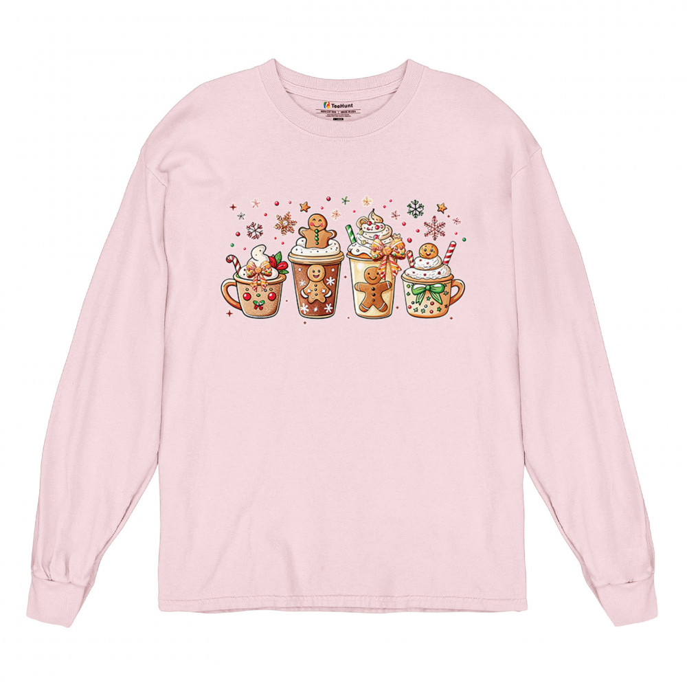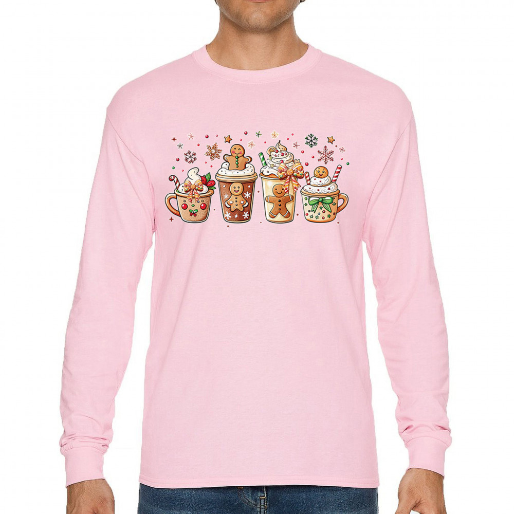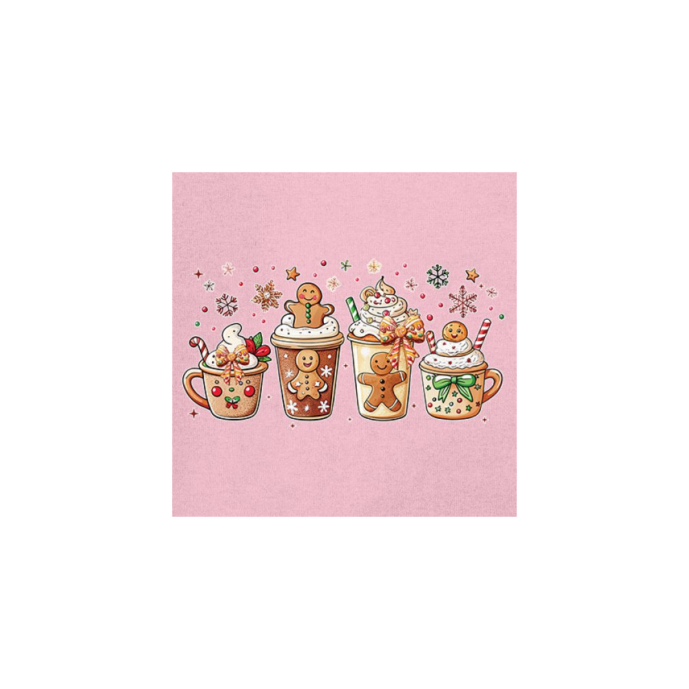 This cute Christmas drink design showcases gingerbread mugs, whipped cream, candy canes, sprinkles, and festive decorations for a warm winter aesthetic. Perfect for cocoa lovers, coffee fans, bakers, cozy holiday nights, gift exchanges, Christmas morning vibes, seasonal parties, and anyone who loves adorable dessert-inspired holiday art.