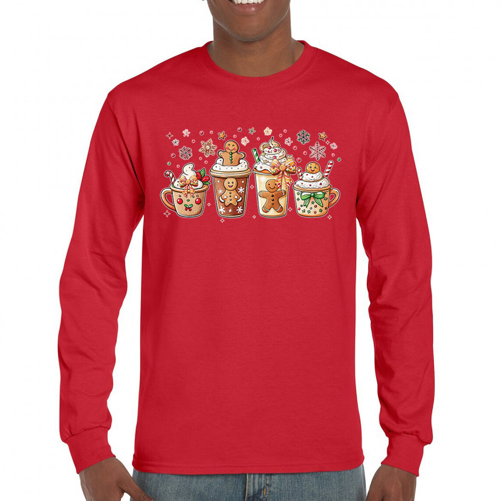 This cute Christmas drink design showcases gingerbread mugs, whipped cream, candy canes, sprinkles, and festive decorations for a warm winter aesthetic. Perfect for cocoa lovers, coffee fans, bakers, cozy holiday nights, gift exchanges, Christmas morning vibes, seasonal parties, and anyone who loves adorable dessert-inspired holiday art.