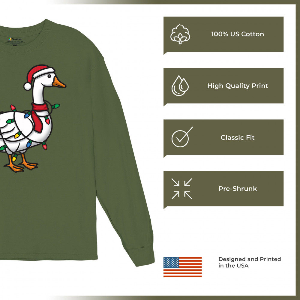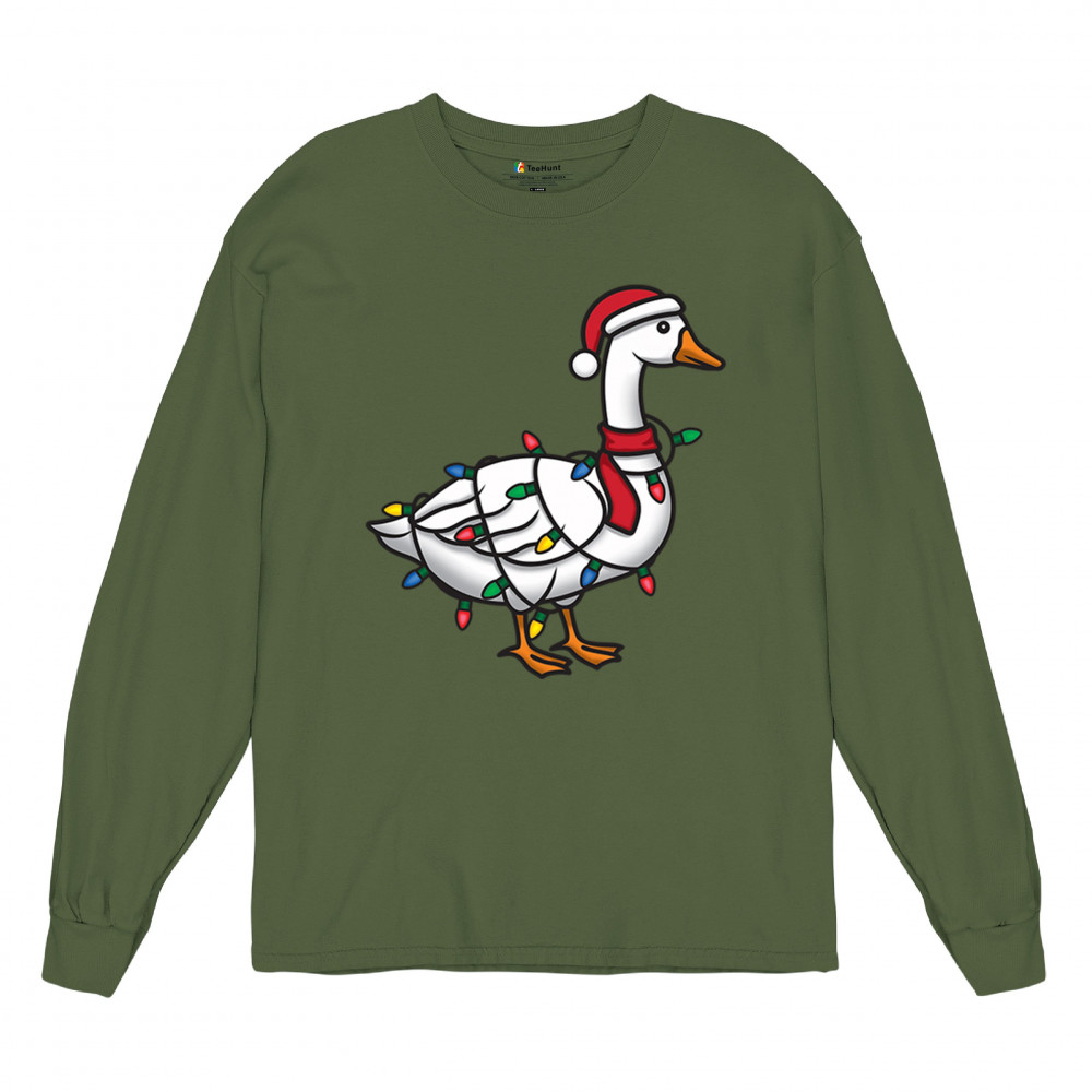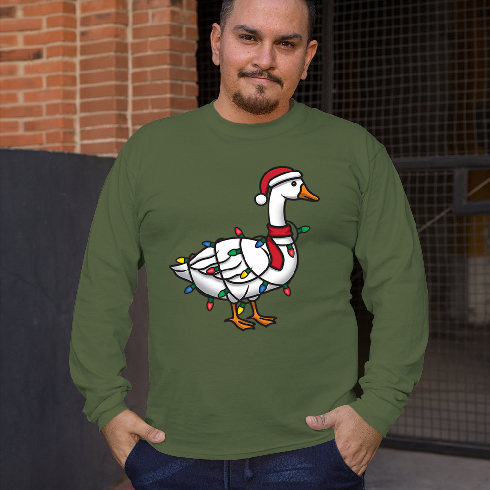 This festive Christmas goose wrapped in bright holiday lights delivers a quirky mix of humor and seasonal charm. Perfect for white elephant exchanges, Secret Santa gifting, or anyone who loves fun holiday graphics. A standout design that blends playful animal humor, cheerful color, and unmistakable Christmas spirit for the entire season.
