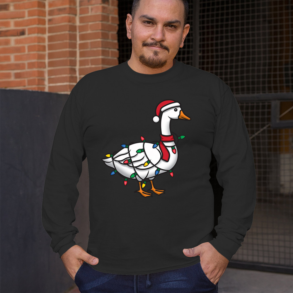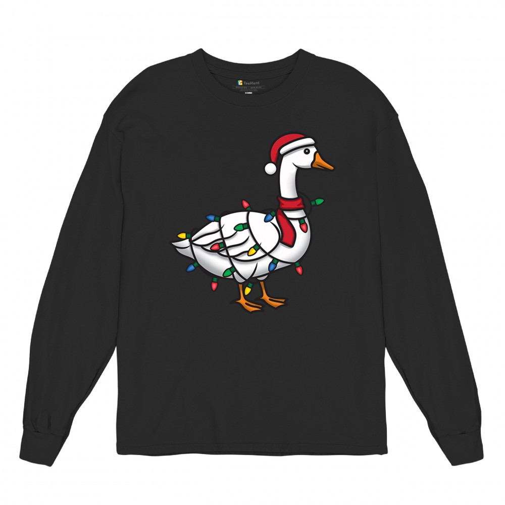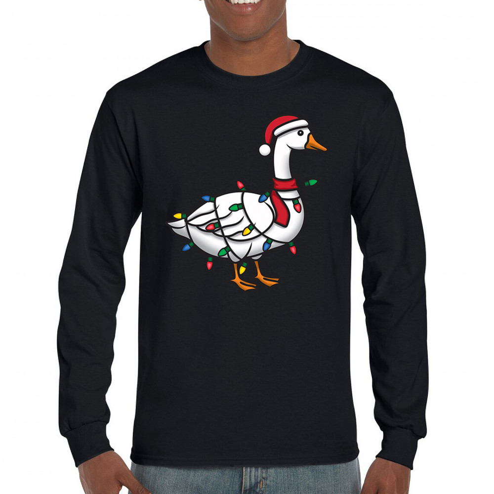 CHRISTMAS GOOSE long sleeve t-shirt jolly xmas lights secret santa gift idea black