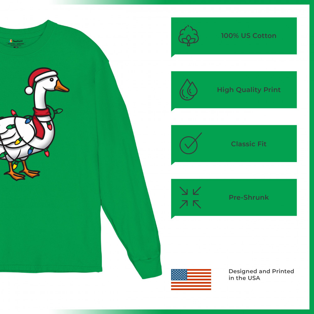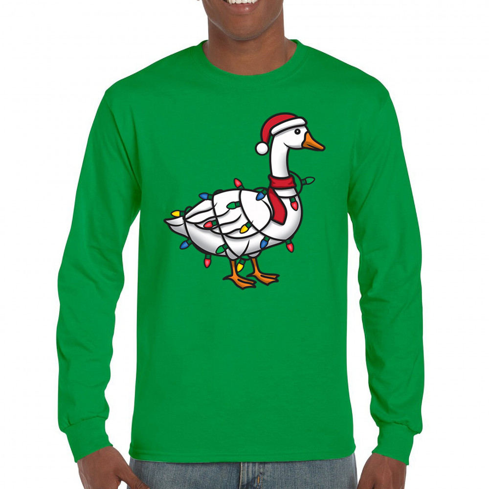 Funny Christmas goose wrapped in lights with festive humor, perfect for holiday gifting, white elephant exchanges, and cheerful seasonal style.
