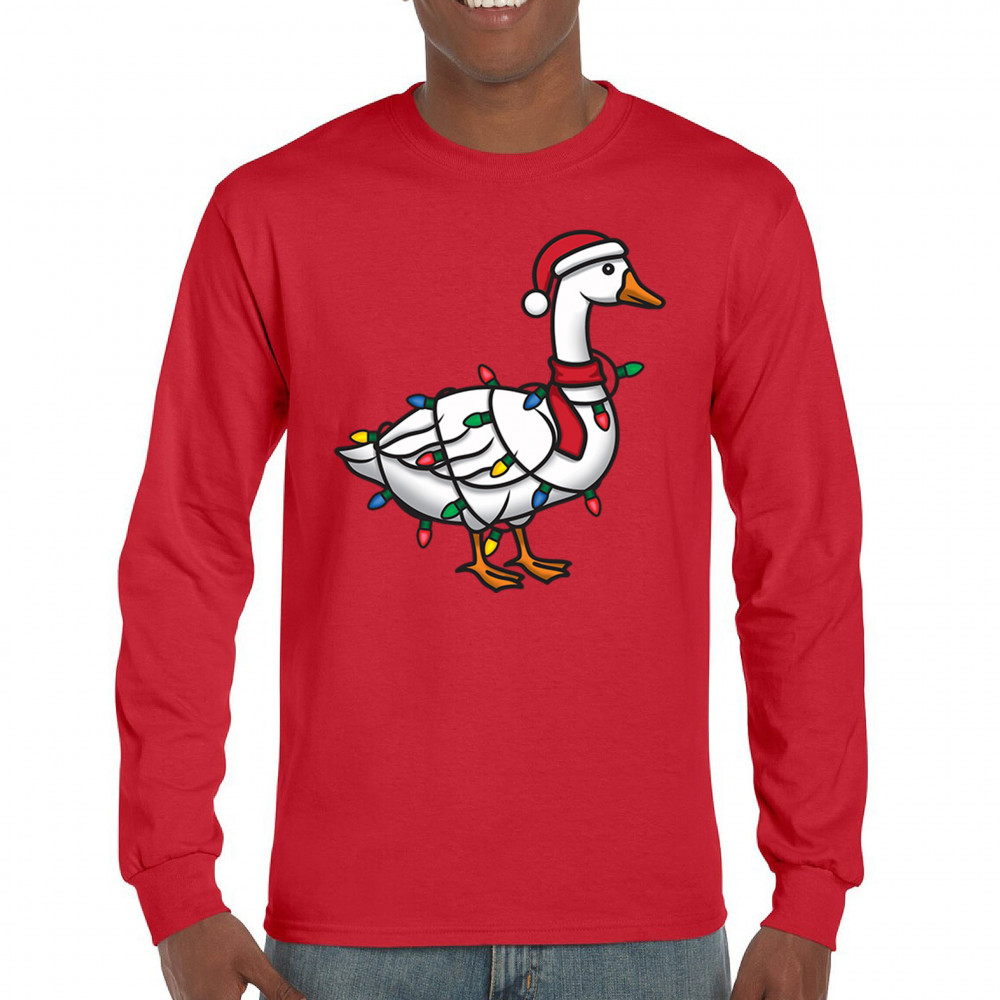 This festive Christmas goose wrapped in bright holiday lights delivers a quirky mix of humor and seasonal charm. Perfect for white elephant exchanges, Secret Santa gifting, or anyone who loves fun holiday graphics. A standout design that blends playful animal humor, cheerful color, and unmistakable Christmas spirit for the entire season.
