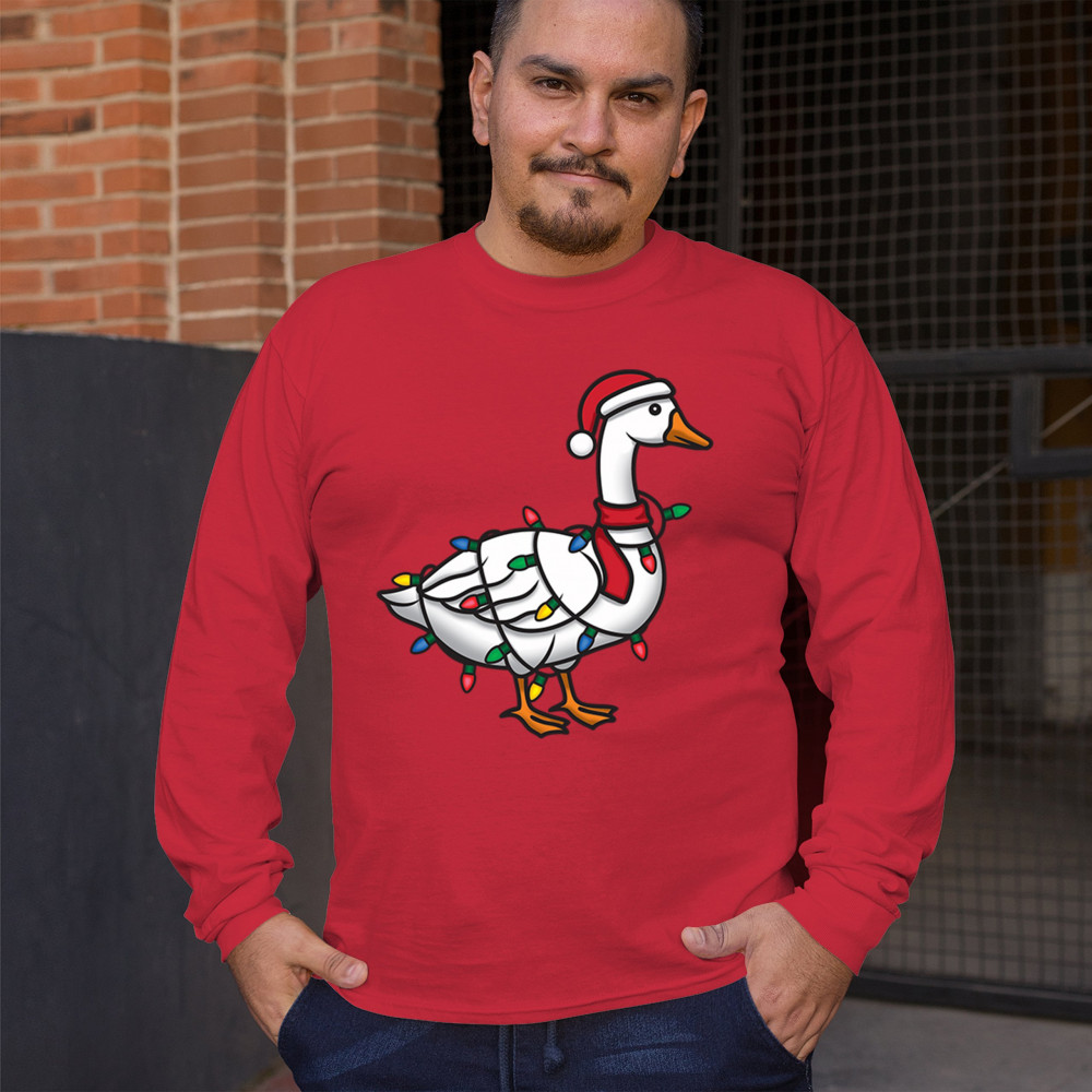 Funny Christmas goose wrapped in lights with festive humor, perfect for holiday gifting, white elephant exchanges, and cheerful seasonal style.