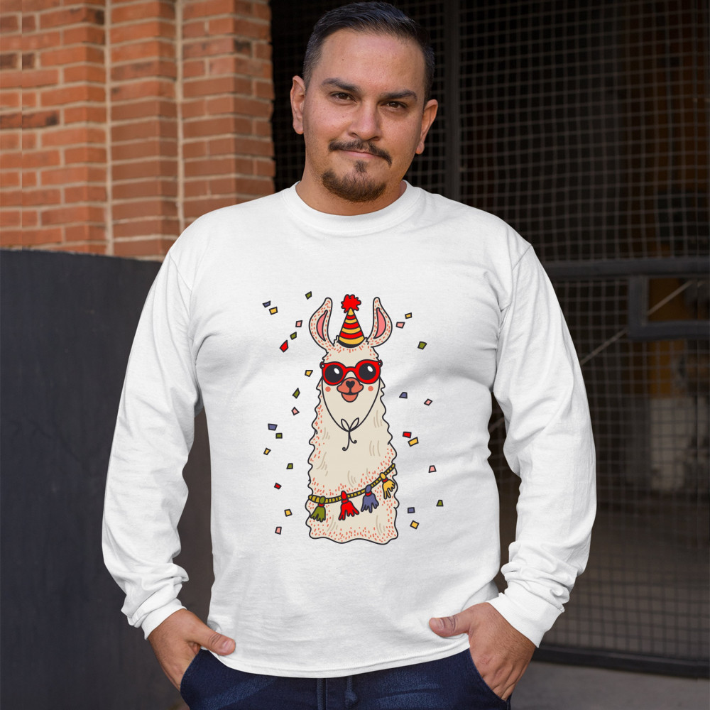 A funny print featuring a cute llama wearing sunglasses and a party hat with confetti falling all over the place. Amazing choice to make people smile and spread positive vibes on Christmas Eve.