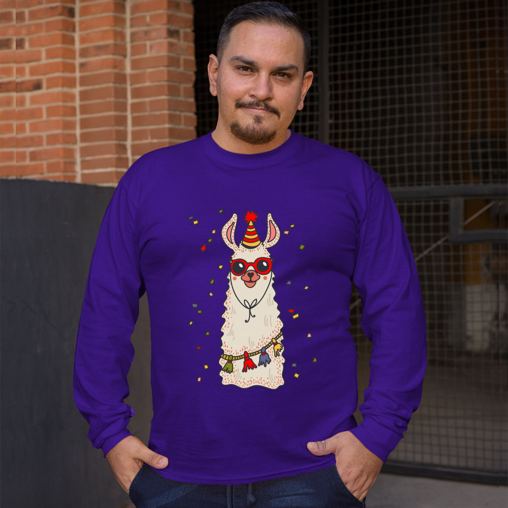 A funny print featuring a cute llama wearing sunglasses and a party hat with confetti falling all over the place. Amazing choice to make people smile and spread positive vibes on Christmas Eve.
