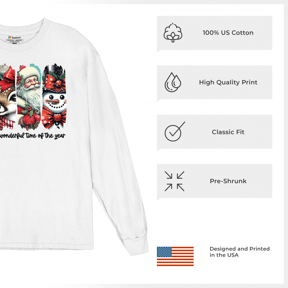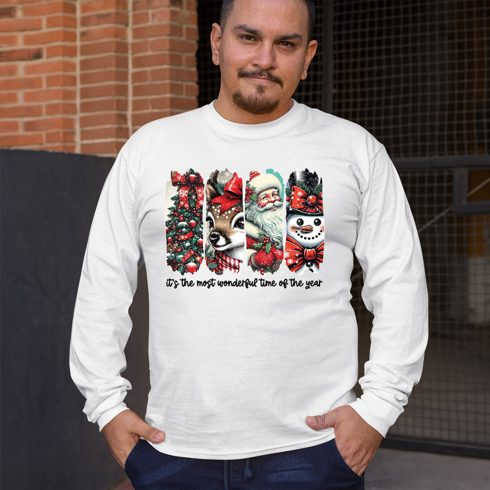 This Christmas design blends a decorated tree, sweet reindeer, vintage Santa, and a bright snowman for a classic seasonal look. Ideal for holiday lovers, winter gatherings, festive parties, gift exchanges, Christmas morning, and anyone who enjoys cheerful, nostalgic holiday art. A warm, eye-catching design that brings out the magic of the season.