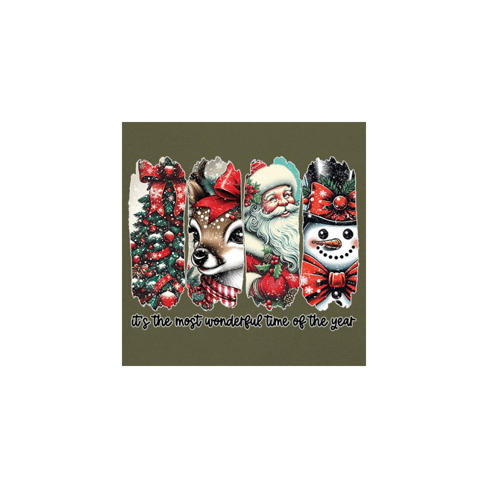 This Christmas design blends a decorated tree, sweet reindeer, vintage Santa, and a bright snowman for a classic seasonal look. Ideal for holiday lovers, winter gatherings, festive parties, gift exchanges, Christmas morning, and anyone who enjoys cheerful, nostalgic holiday art. A warm, eye-catching design that brings out the magic of the season.