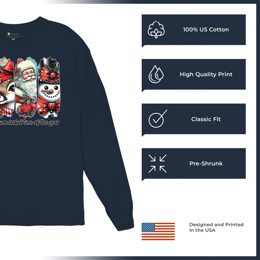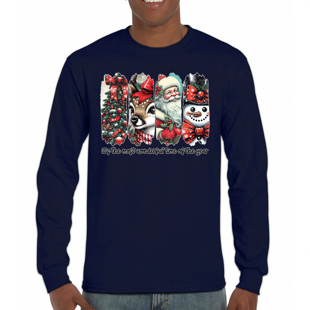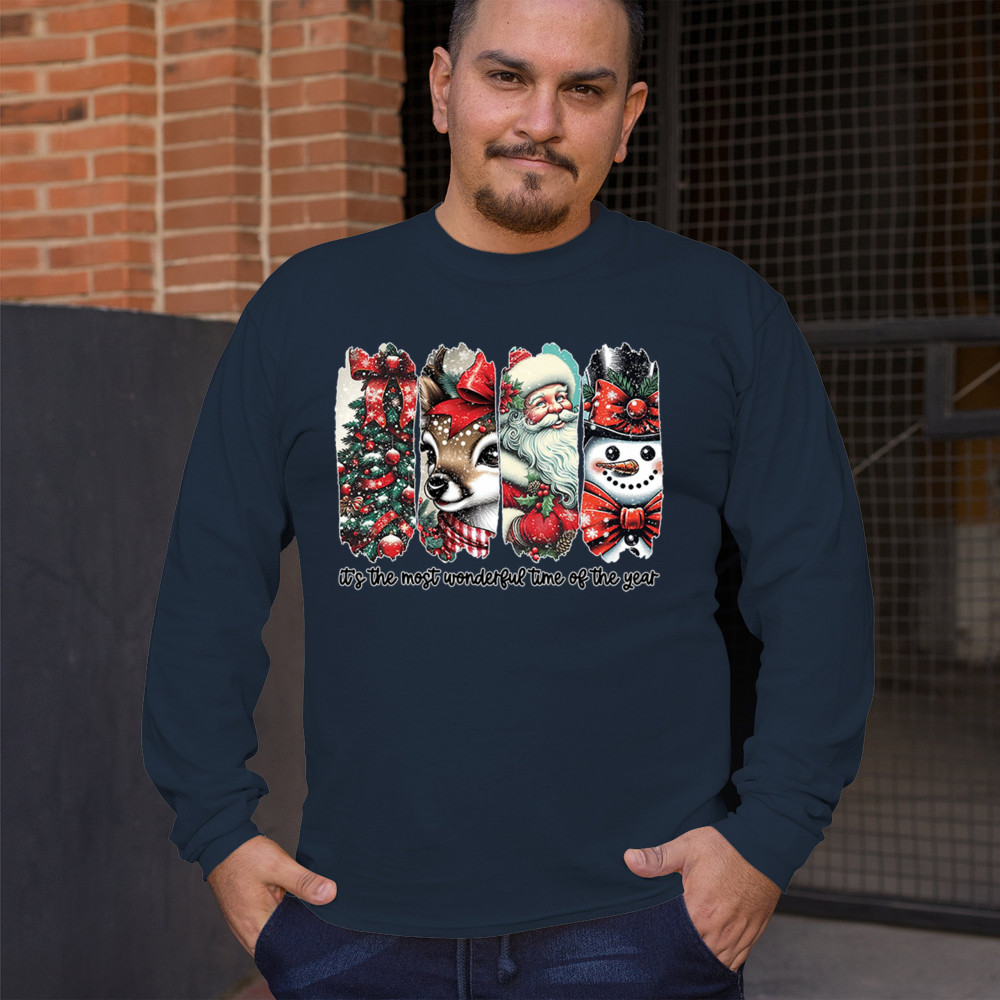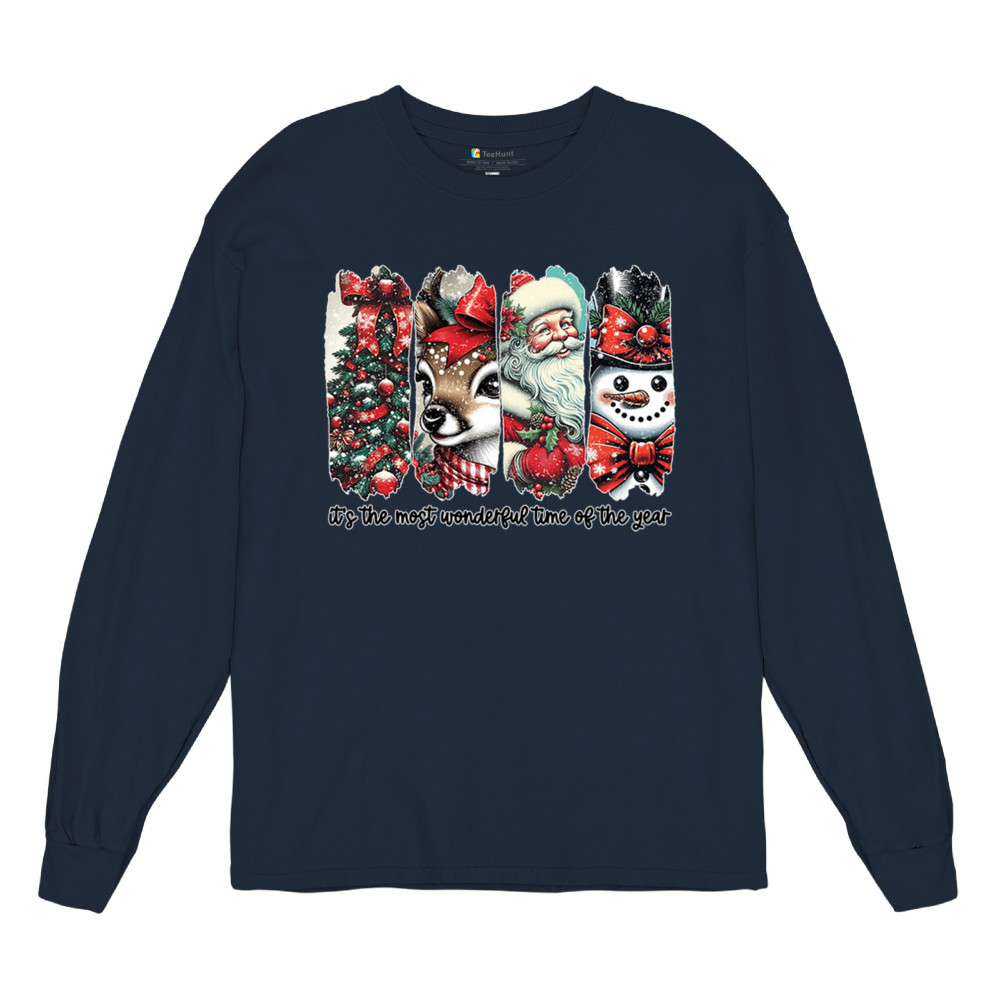 This Christmas design blends a decorated tree, sweet reindeer, vintage Santa, and a bright snowman for a classic seasonal look. Ideal for holiday lovers, winter gatherings, festive parties, gift exchanges, Christmas morning, and anyone who enjoys cheerful, nostalgic holiday art. A warm, eye-catching design that brings out the magic of the season.