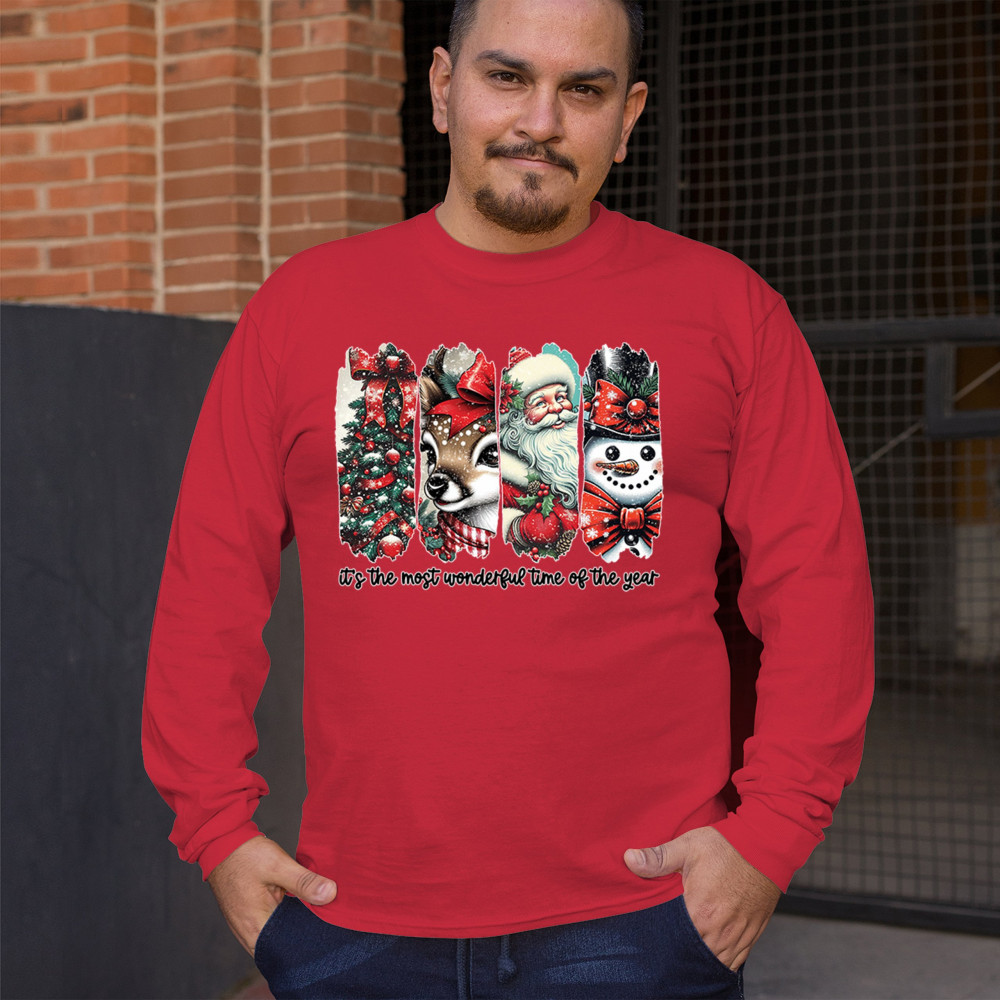 This Christmas design blends a decorated tree, sweet reindeer, vintage Santa, and a bright snowman for a classic seasonal look. Ideal for holiday lovers, winter gatherings, festive parties, gift exchanges, Christmas morning, and anyone who enjoys cheerful, nostalgic holiday art. A warm, eye-catching design that brings out the magic of the season.