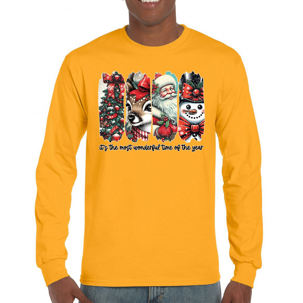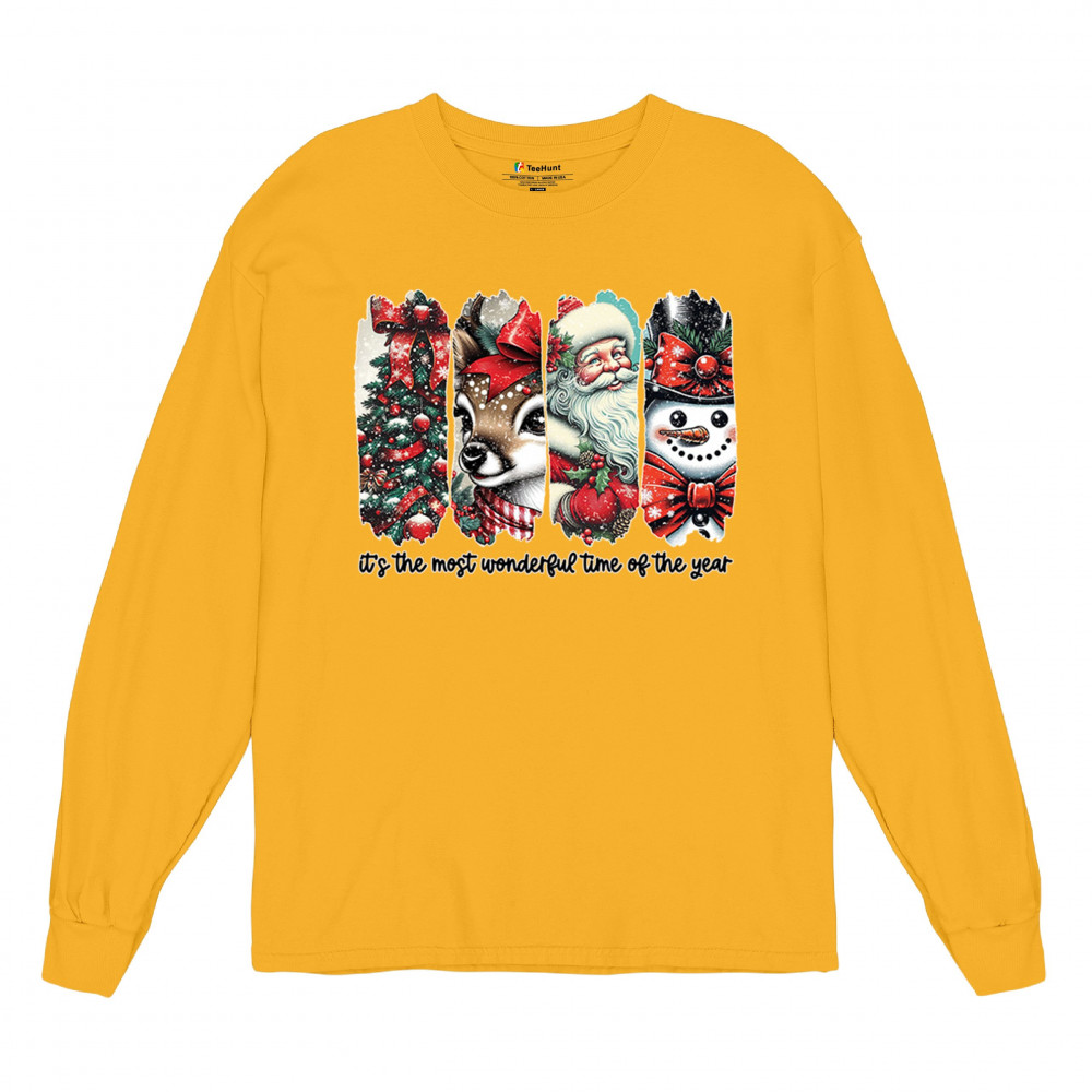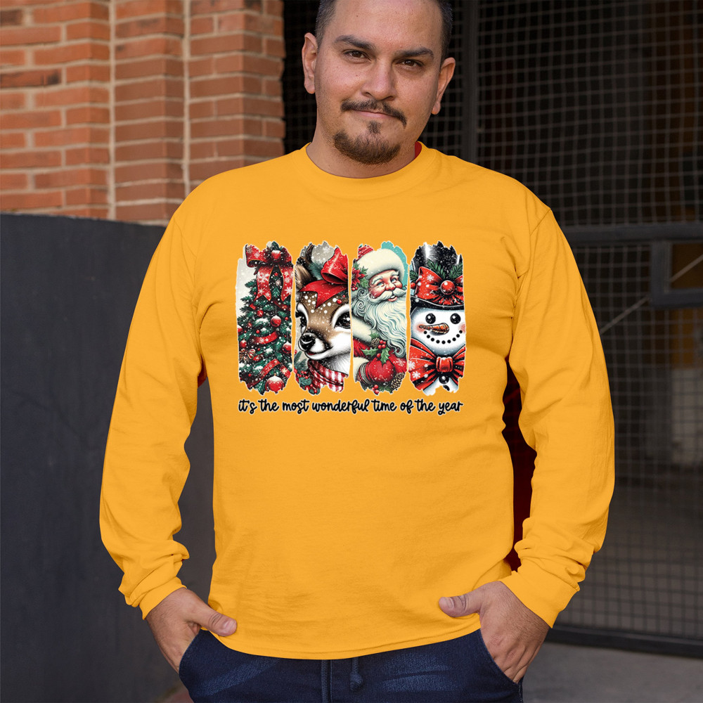 This Christmas design blends a decorated tree, sweet reindeer, vintage Santa, and a bright snowman for a classic seasonal look. Ideal for holiday lovers, winter gatherings, festive parties, gift exchanges, Christmas morning, and anyone who enjoys cheerful, nostalgic holiday art. A warm, eye-catching design that brings out the magic of the season.