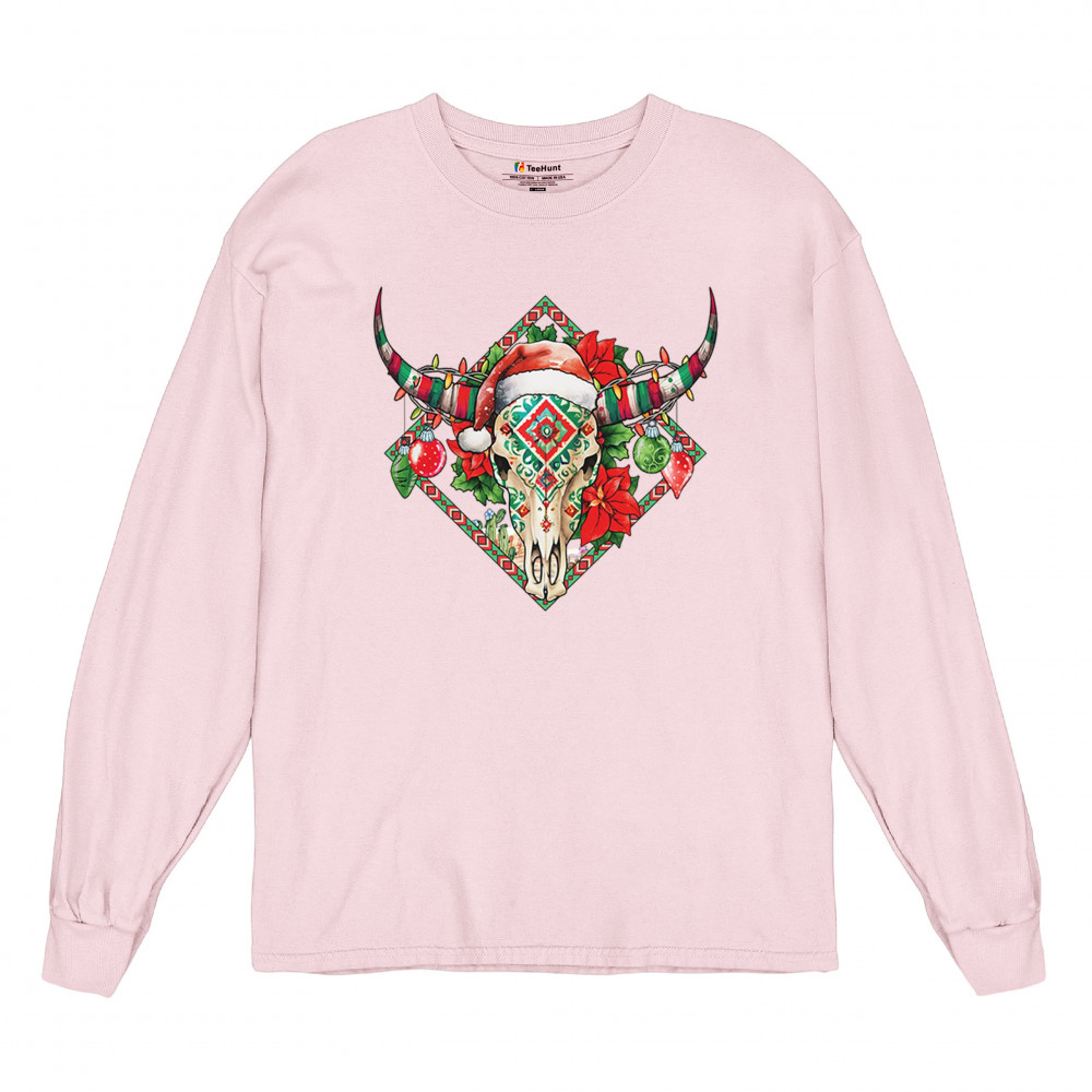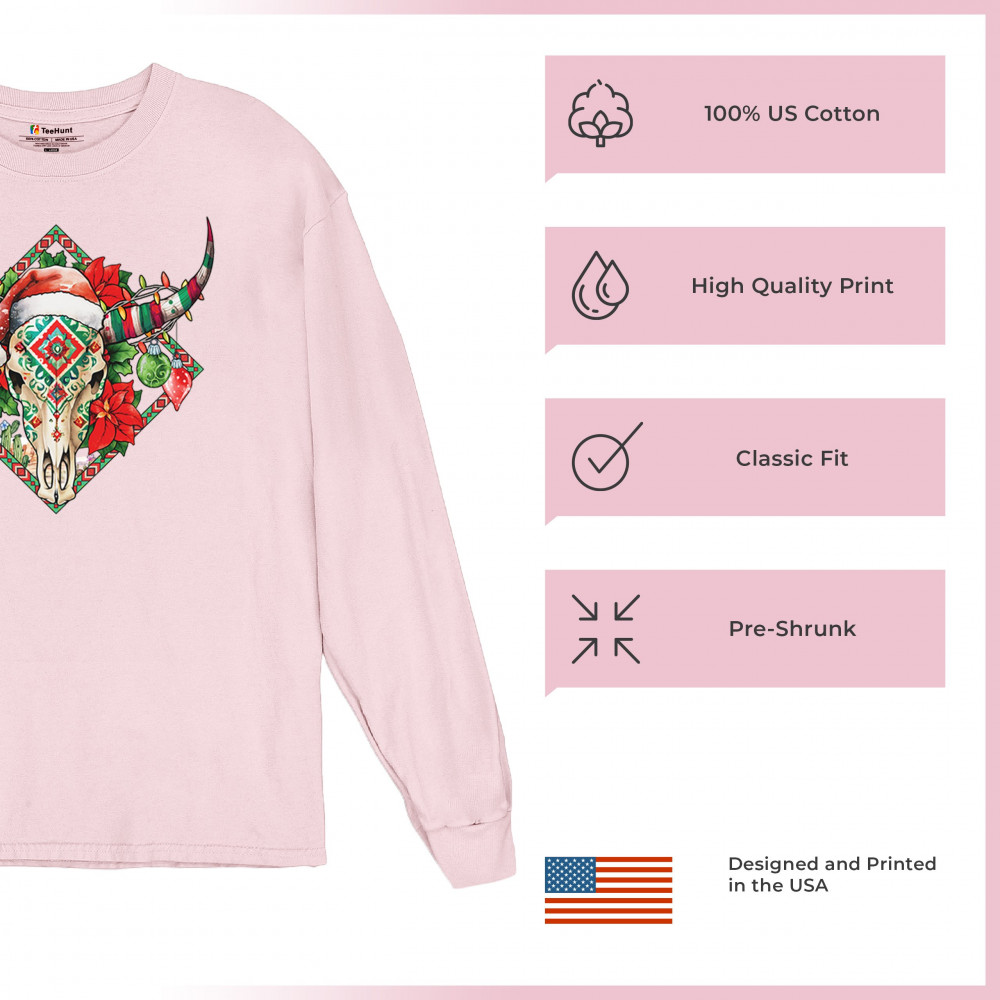 Blend Southwestern charm with holiday cheer! This vibrant skull design with poinsettias and ornaments is perfect for festive parties and unique gifts!