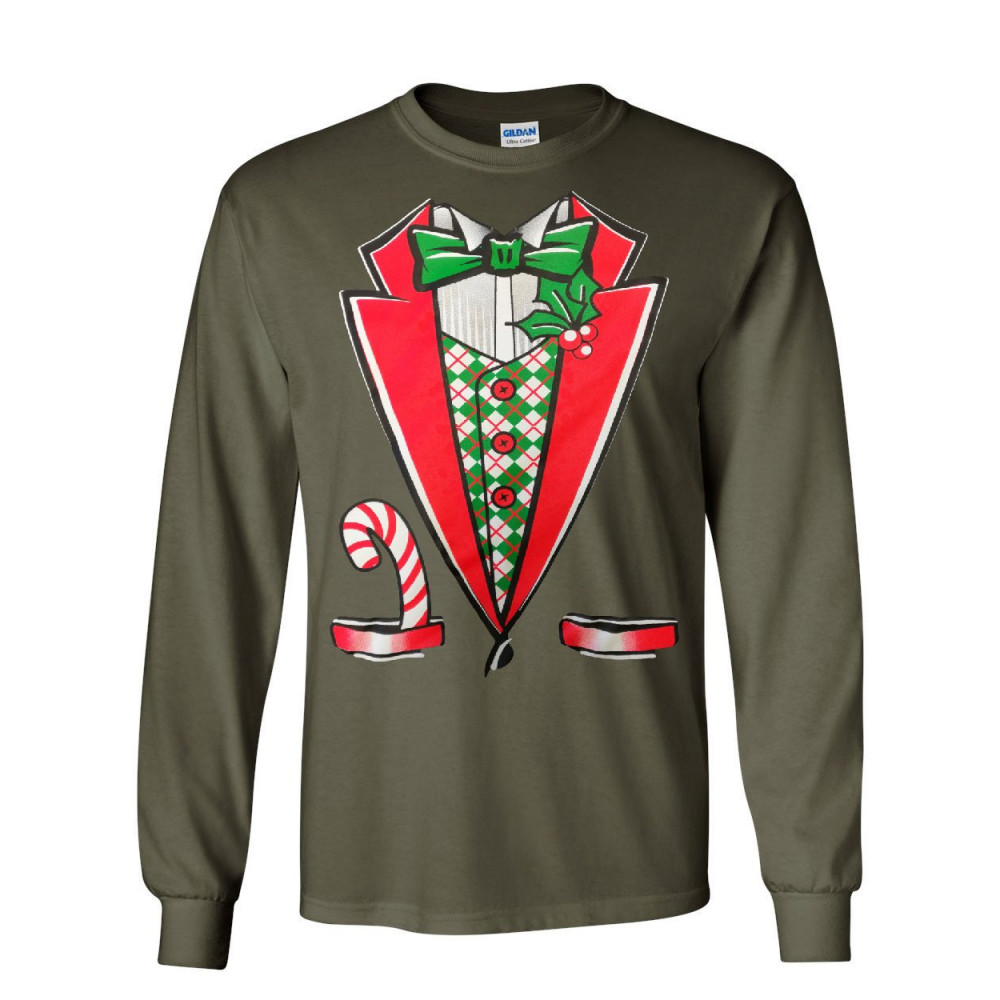 CHRISTMAS TUXEDO long sleeve t-shirt funny xmas santa elf military green