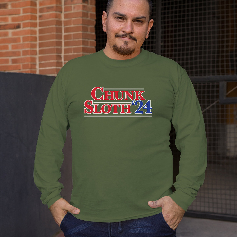 Celebrate 80s nostalgia and political humor with our Chunk and Sloth '24 design. Perfect for casual wear, movie nights, and themed parties. Durable and stylish.