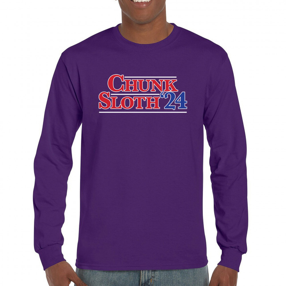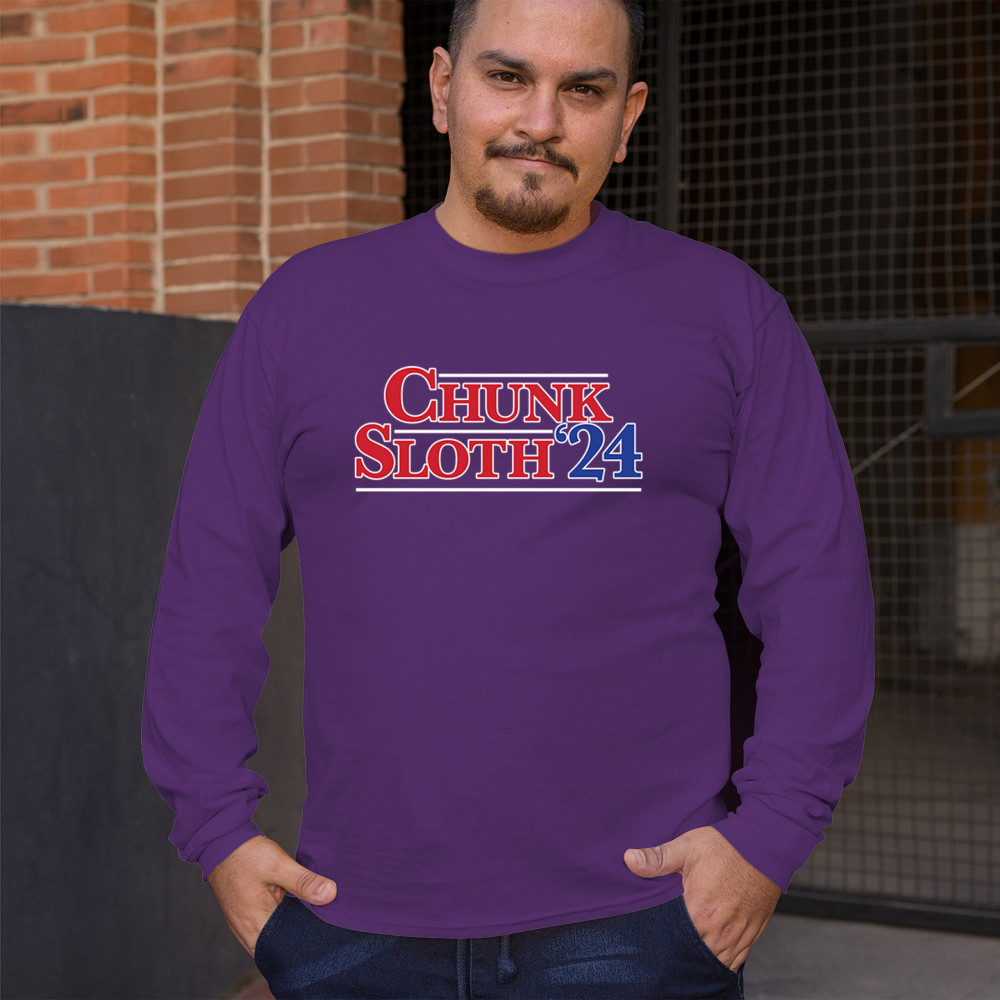 Celebrate 80s nostalgia and political humor with our Chunk and Sloth '24 design. Perfect for casual wear, movie nights, and themed parties. Durable and stylish.