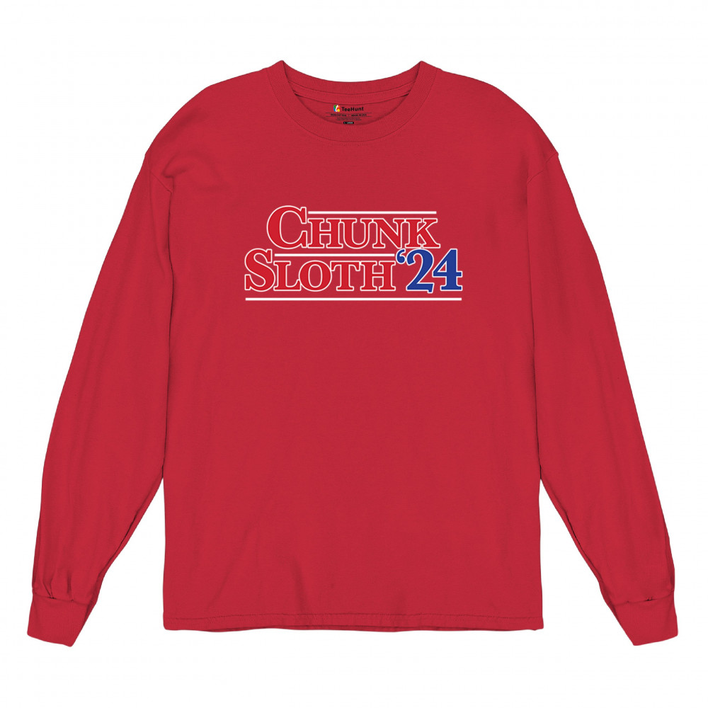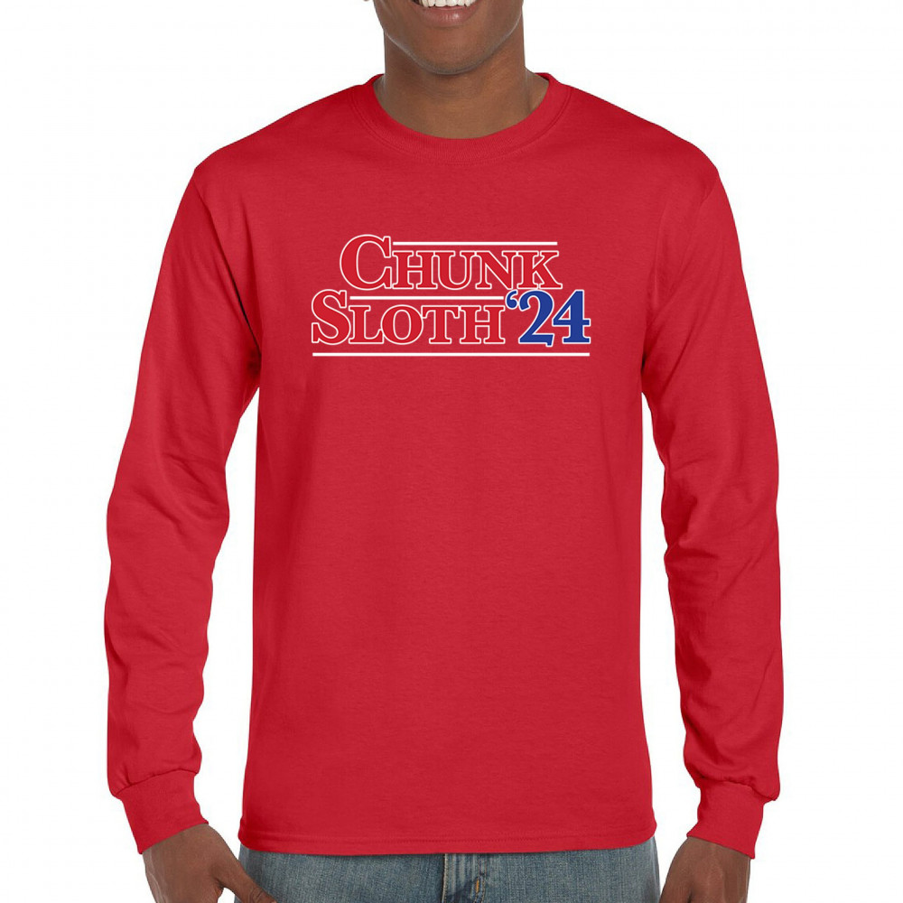 Celebrate 80s nostalgia and political humor with our Chunk and Sloth '24 design. Perfect for casual wear, movie nights, and themed parties. Durable and stylish.