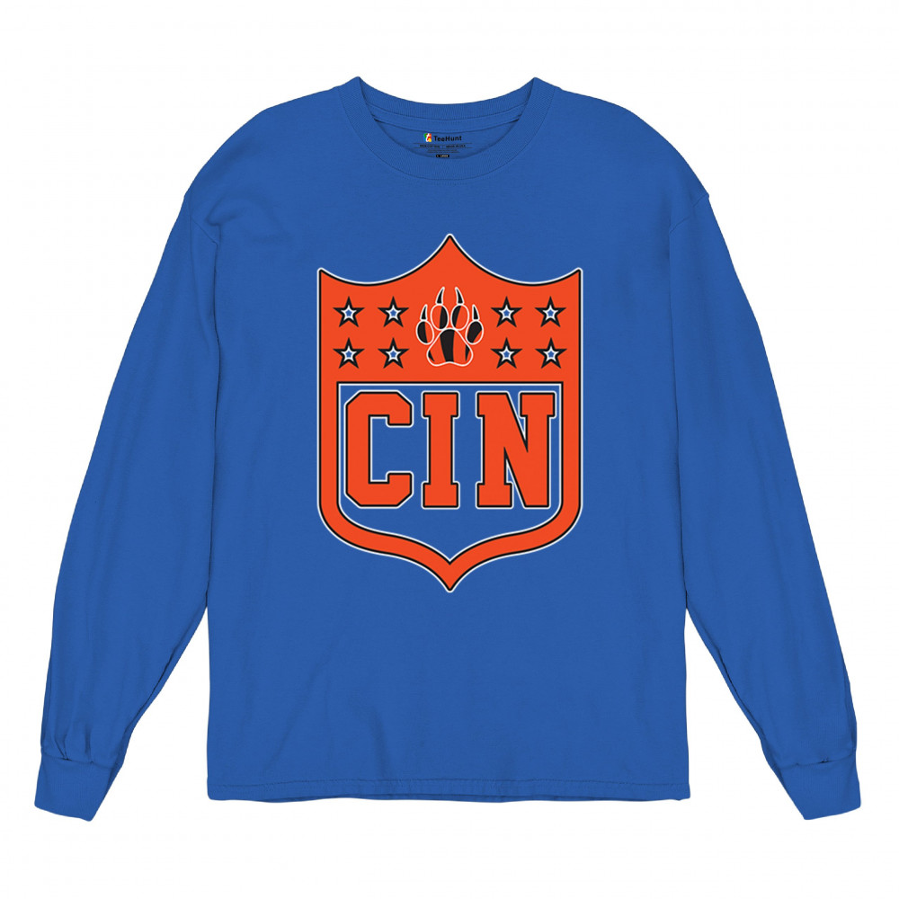 Celebrate your love for Cincinnati football with this CIN shield paw design, blending retro football crest style with vintage football culture. Perfect for Cincinnati sports culture, Cincinnati champions, and Cincinnati football nation, this design embodies underdog spirit, Cincinnati grit, and college football culture. A bold look for Saturday football vibes, Sunday football, and every big game.