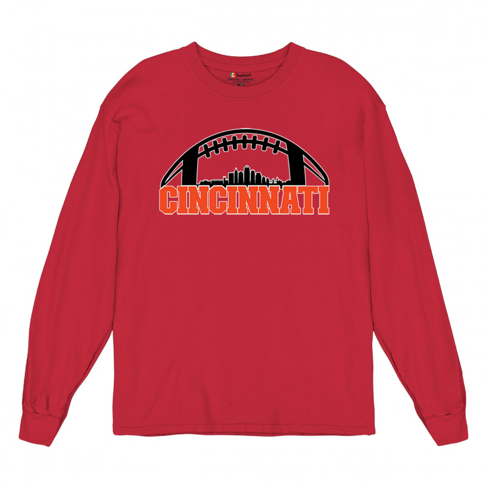 Celebrate Cincinnati and football with this bold skyline design under a football arch. Perfect for fans, tailgates, and game days!