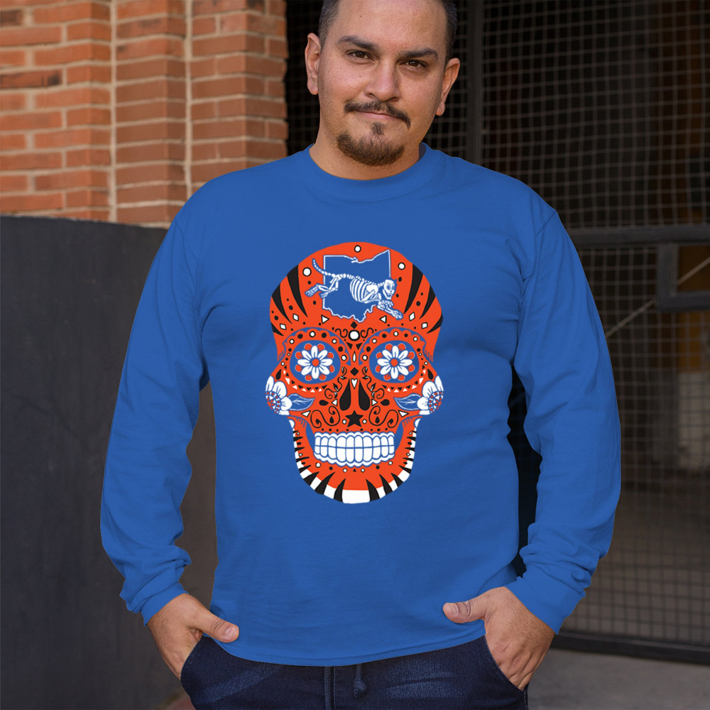 Celebrate Cincinnati football with this Sugar Skull design featuring the Queen City Paw. With underdog grit, black & orange pride, and Saturday football culture, it’s made for Game Day excitement, playoff energy, and fantasy league rivalries. A bold calavera for passionate Cincinnati fans.