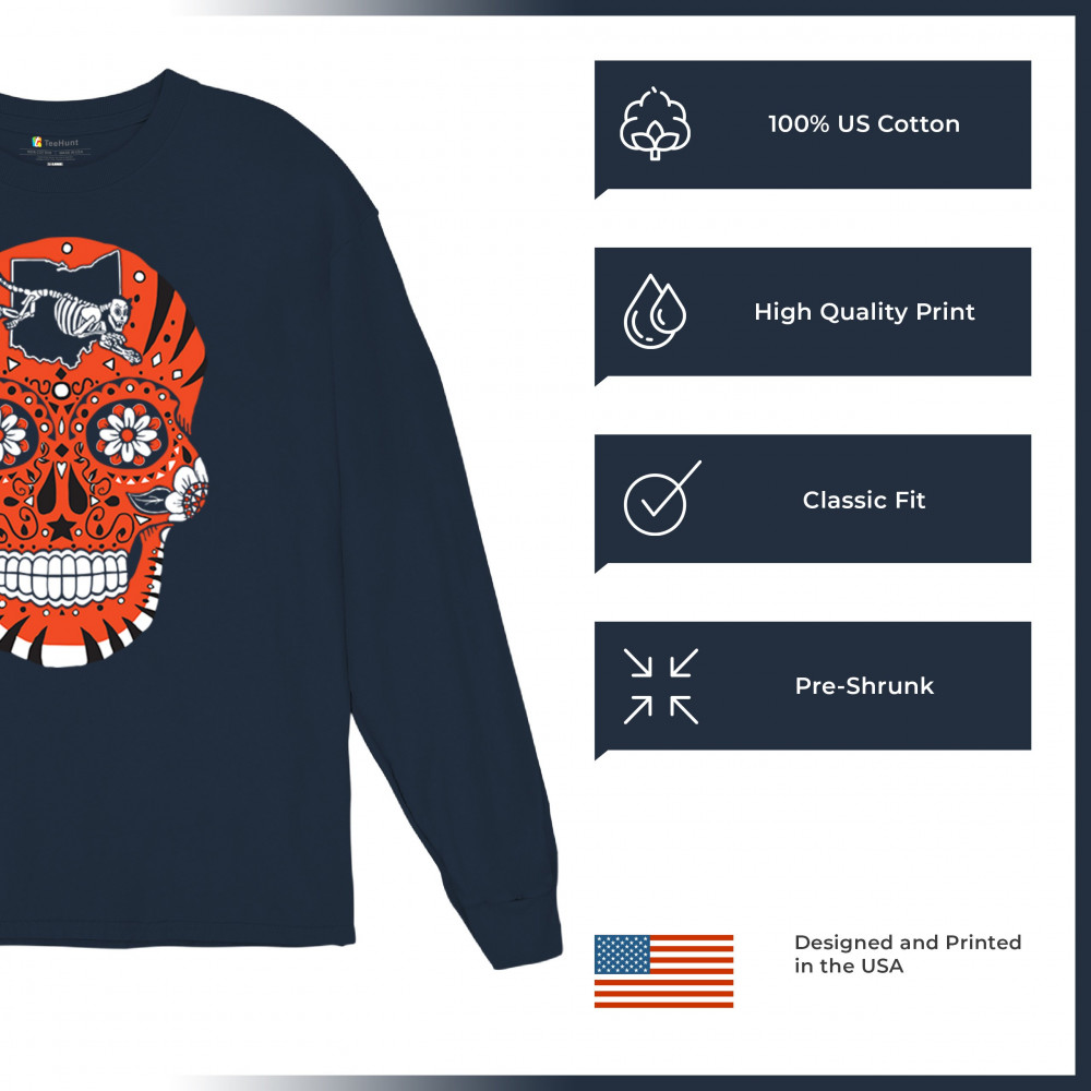 Celebrate Cincinnati football with this Sugar Skull design featuring the Queen City Paw. With underdog grit, black & orange pride, and Saturday football culture, it’s made for Game Day excitement, playoff energy, and fantasy league rivalries. A bold calavera for passionate Cincinnati fans.
