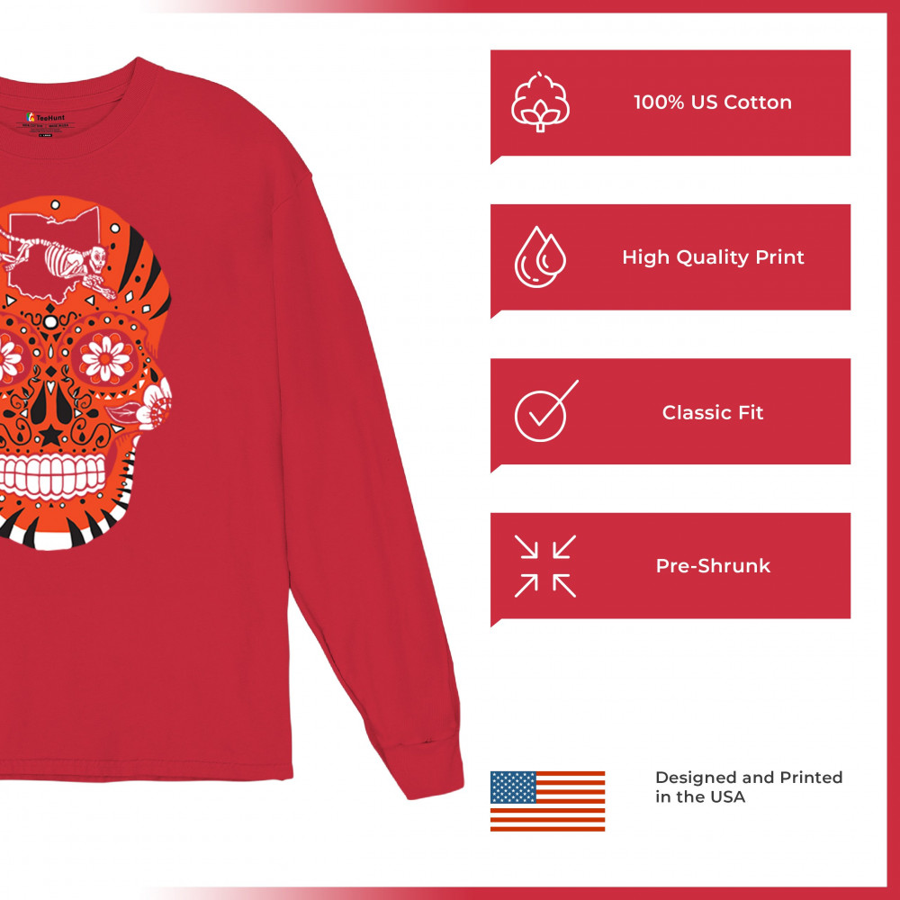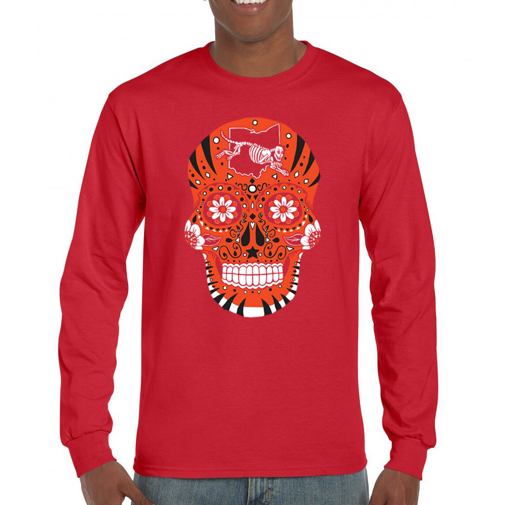 Celebrate Cincinnati football with this Sugar Skull design featuring the Queen City Paw. With underdog grit, black & orange pride, and Saturday football culture, it’s made for Game Day excitement, playoff energy, and fantasy league rivalries. A bold calavera for passionate Cincinnati fans.