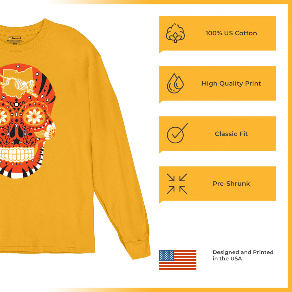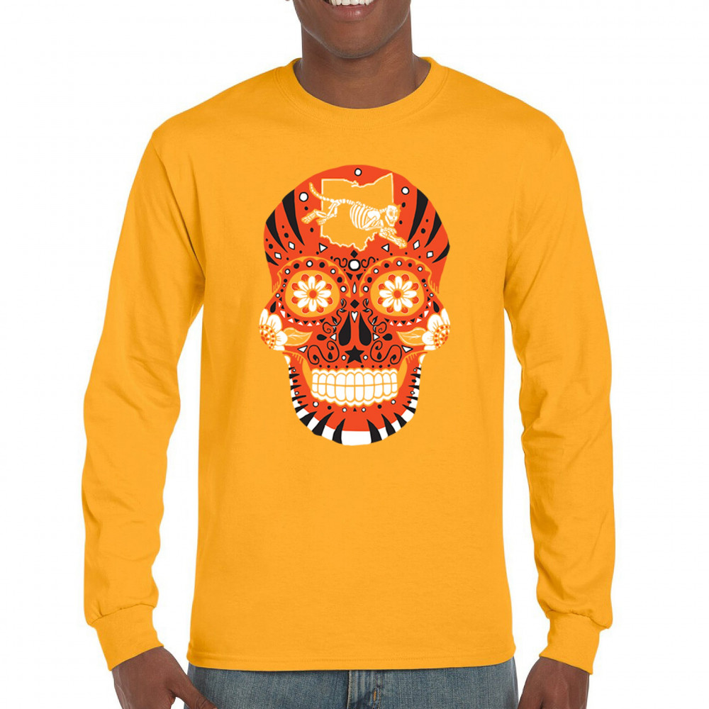 Celebrate Cincinnati football with this Sugar Skull design featuring the Queen City Paw. With underdog grit, black & orange pride, and Saturday football culture, it’s made for Game Day excitement, playoff energy, and fantasy league rivalries. A bold calavera for passionate Cincinnati fans.