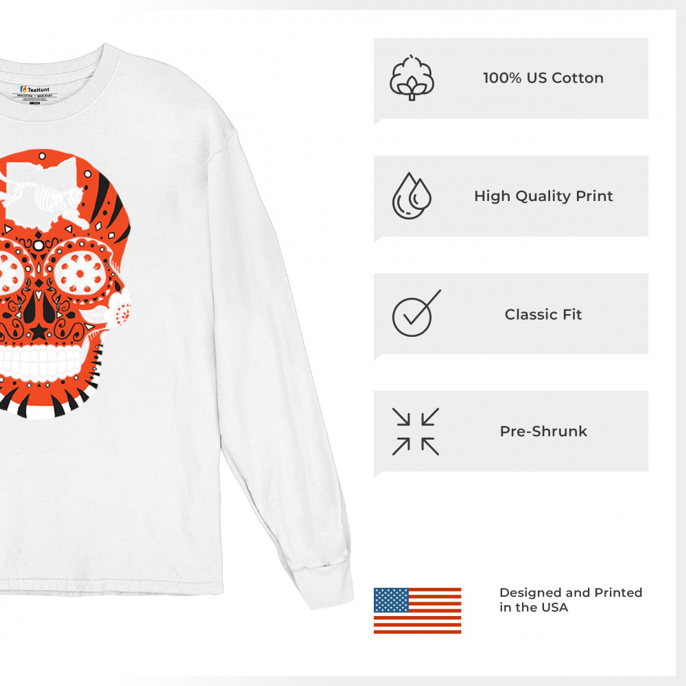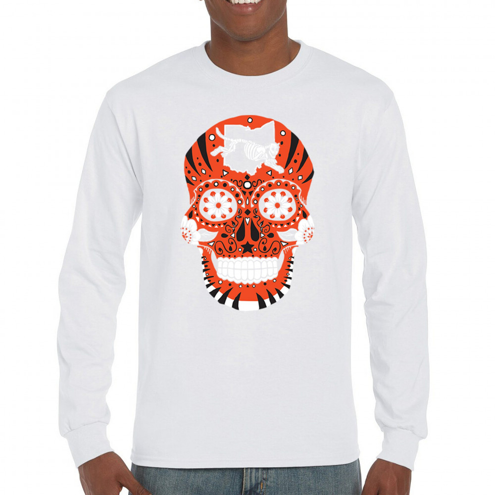Celebrate Cincinnati football with this Sugar Skull design featuring the Queen City Paw. With underdog grit, black & orange pride, and Saturday football culture, it’s made for Game Day excitement, playoff energy, and fantasy league rivalries. A bold calavera for passionate Cincinnati fans.