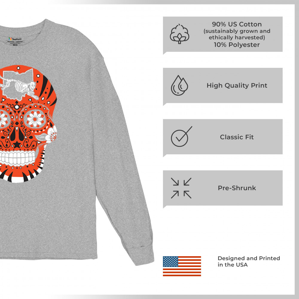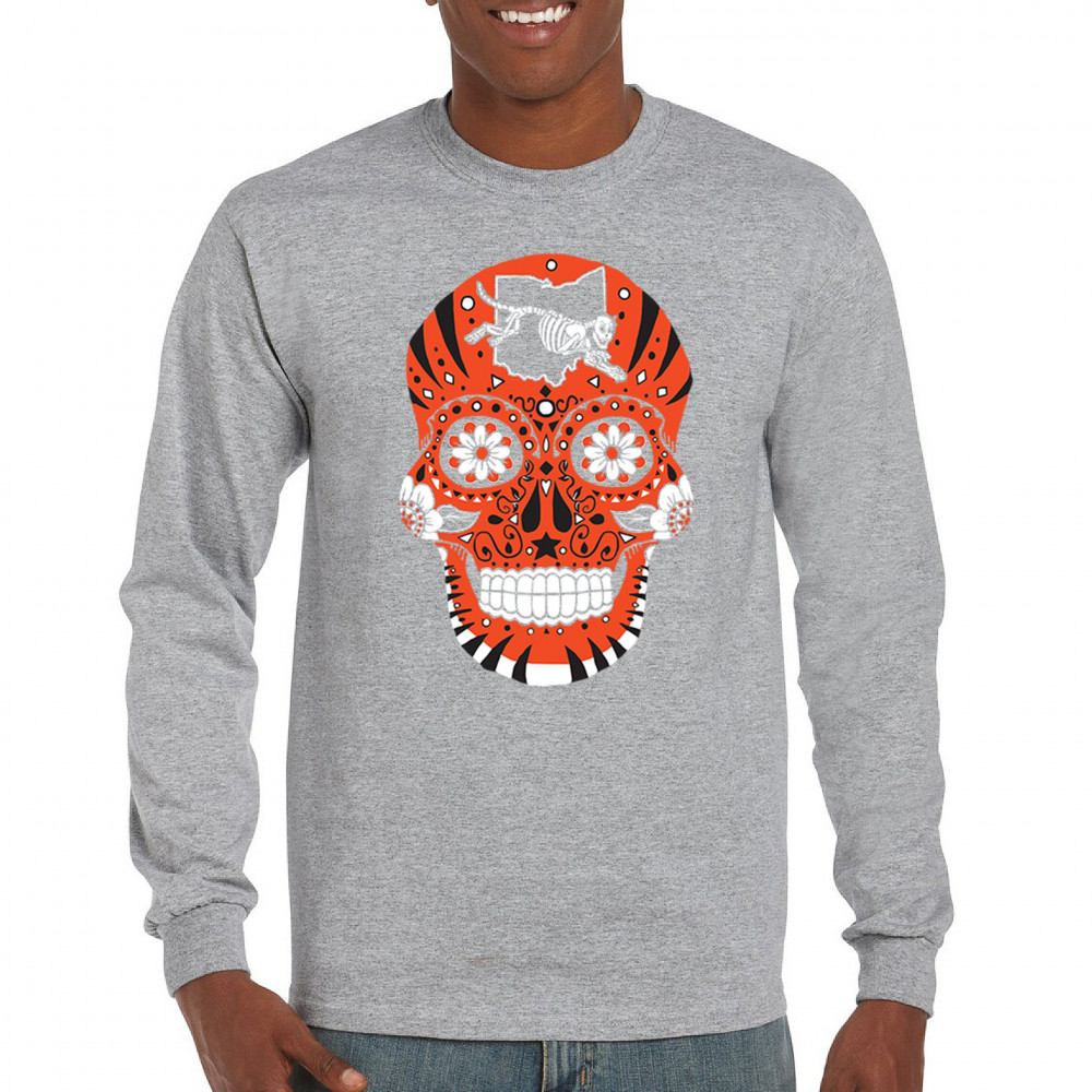 Celebrate Cincinnati football with this Sugar Skull design featuring the Queen City Paw. With underdog grit, black & orange pride, and Saturday football culture, it’s made for Game Day excitement, playoff energy, and fantasy league rivalries. A bold calavera for passionate Cincinnati fans.