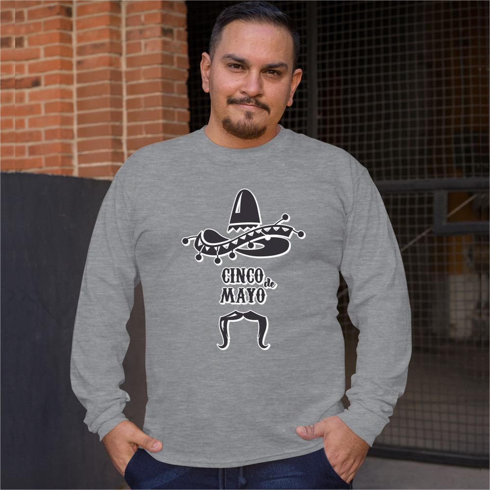 CINCO DE MAYO long sleeve t-shirt funny party sombrero mexican culture fiesta gray