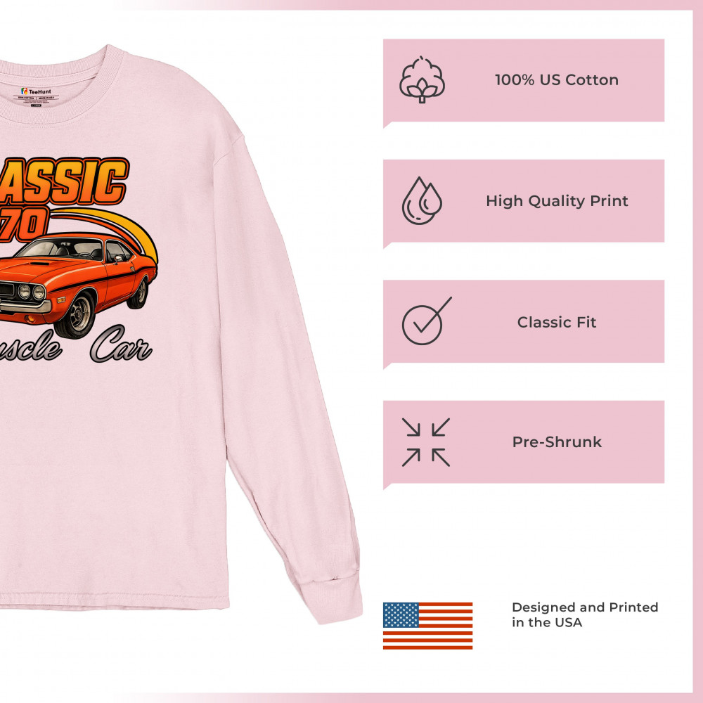 Show your pride for American muscle with this bold 1970 design featuring a classic orange coupe in retro detail. Perfect for gearheads, vintage car lovers, and collectors who live for the sound of old-school performance. A tribute to the raw attitude and street dominance of 1970 muscle.