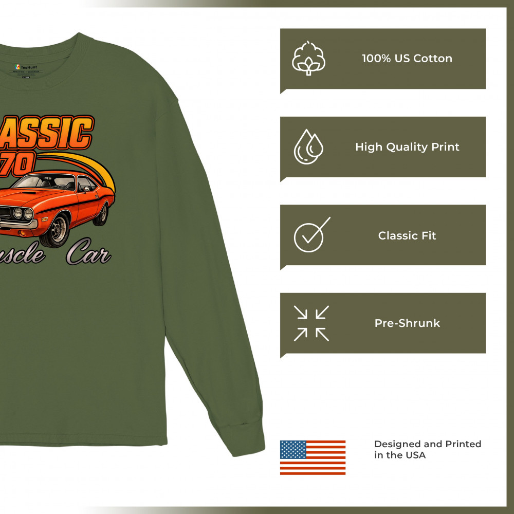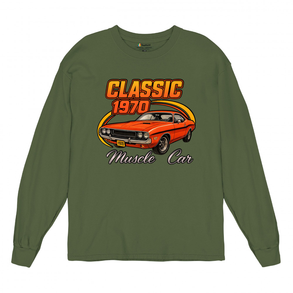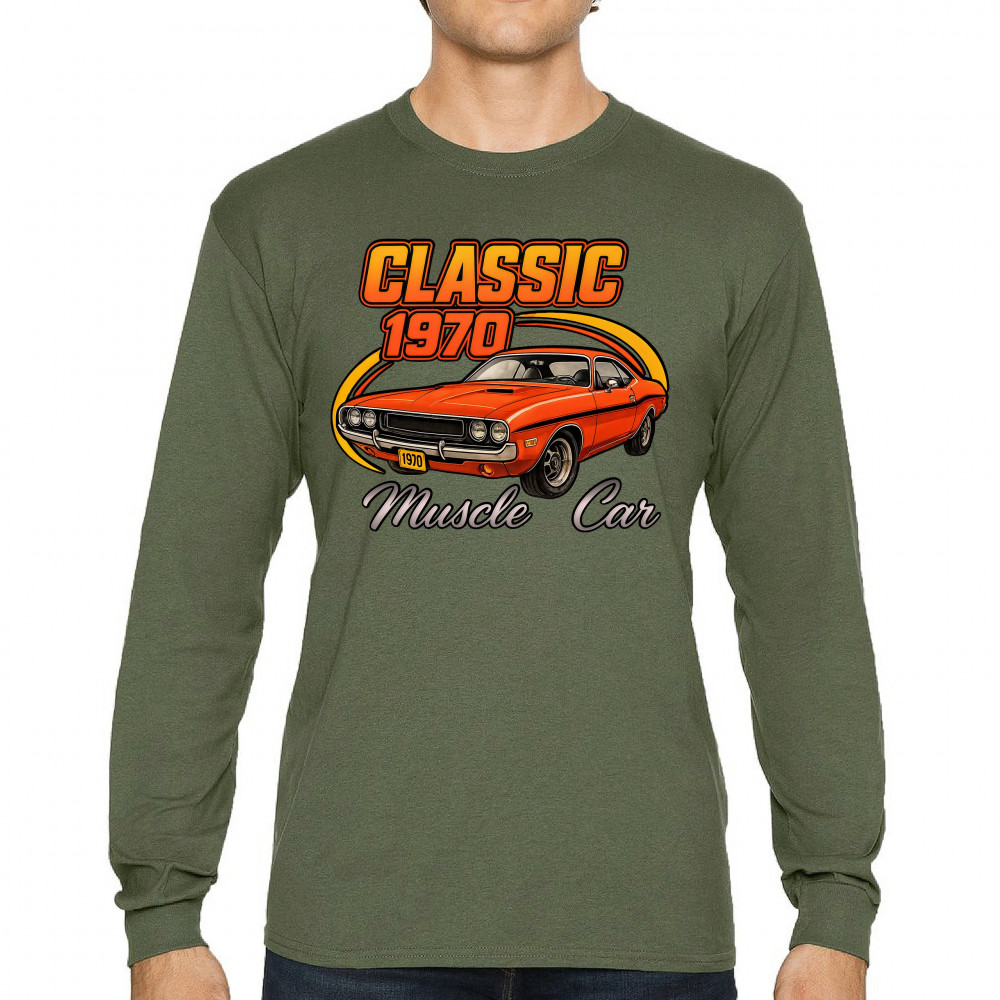 Show your pride for American muscle with this bold 1970 design featuring a classic orange coupe in retro detail. Perfect for gearheads, vintage car lovers, and collectors who live for the sound of old-school performance. A tribute to the raw attitude and street dominance of 1970 muscle.