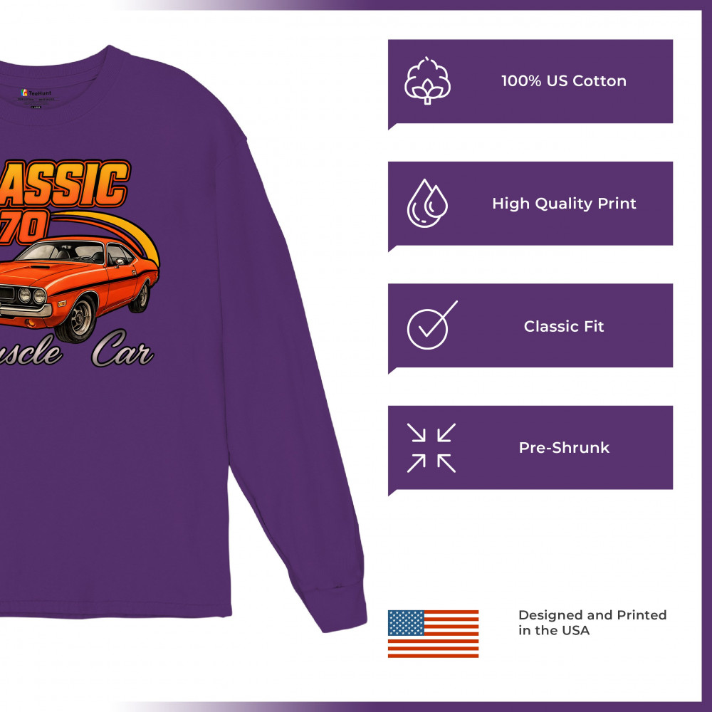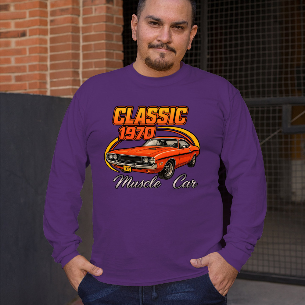 Show your pride for American muscle with this bold 1970 design featuring a classic orange coupe in retro detail. Perfect for gearheads, vintage car lovers, and collectors who live for the sound of old-school performance. A tribute to the raw attitude and street dominance of 1970 muscle.