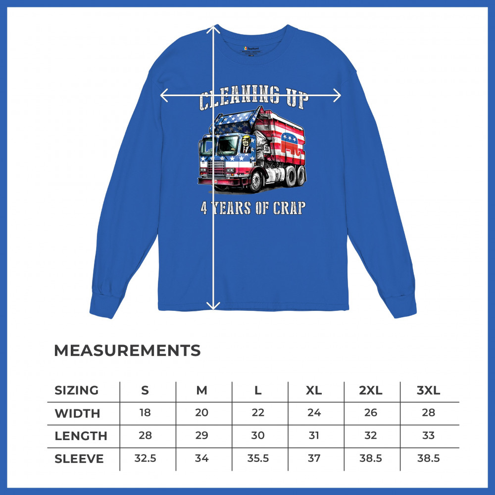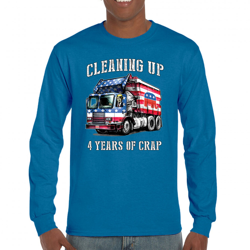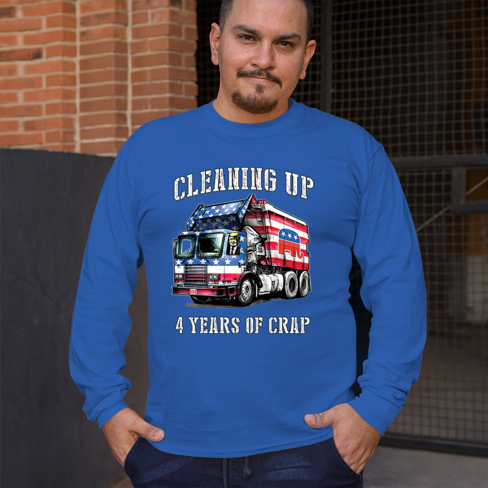 Bold "Cleaning Up 4 Years of Crap" design featuring Trump, the GOP, and the American flag. Perfect for proud conservatives and patriots.