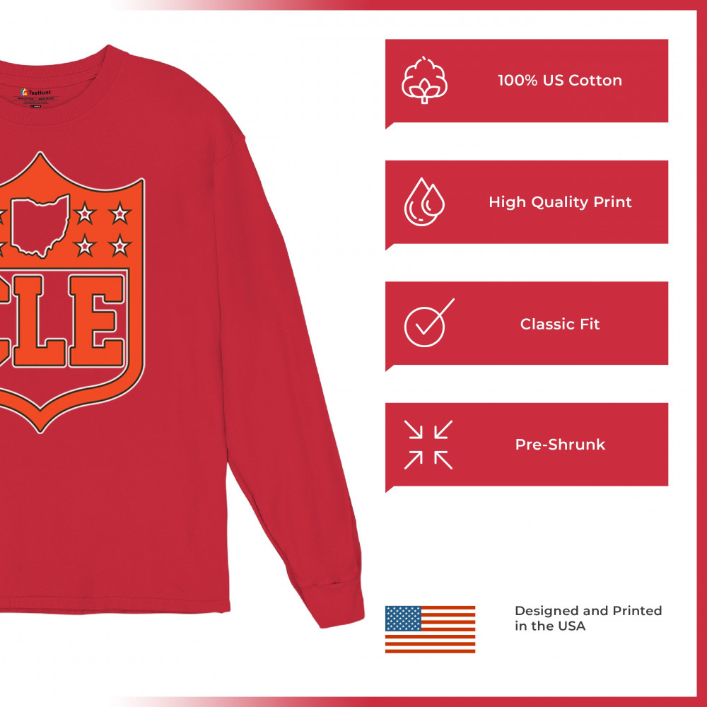 Celebrate your Cleveland football heritage with this bold CLE shield fan design. From Cleveland fall football to cold weather grit, this gear embodies Rust Belt pride, underdog toughness, and blue collar spirit. Whether it’s Cleveland playoff vibes, championship drive, Lake Erie football pride, or rugged football style, this piece delivers weekend energy for Cleveland football family and die-hard fans alike.