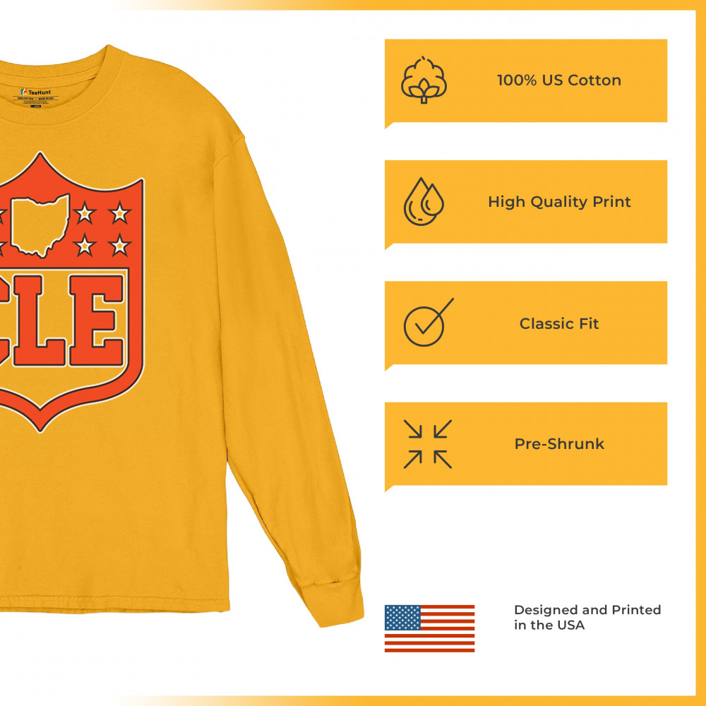 Celebrate your Cleveland football heritage with this bold CLE shield fan design. From Cleveland fall football to cold weather grit, this gear embodies Rust Belt pride, underdog toughness, and blue collar spirit. Whether it’s Cleveland playoff vibes, championship drive, Lake Erie football pride, or rugged football style, this piece delivers weekend energy for Cleveland football family and die-hard fans alike.