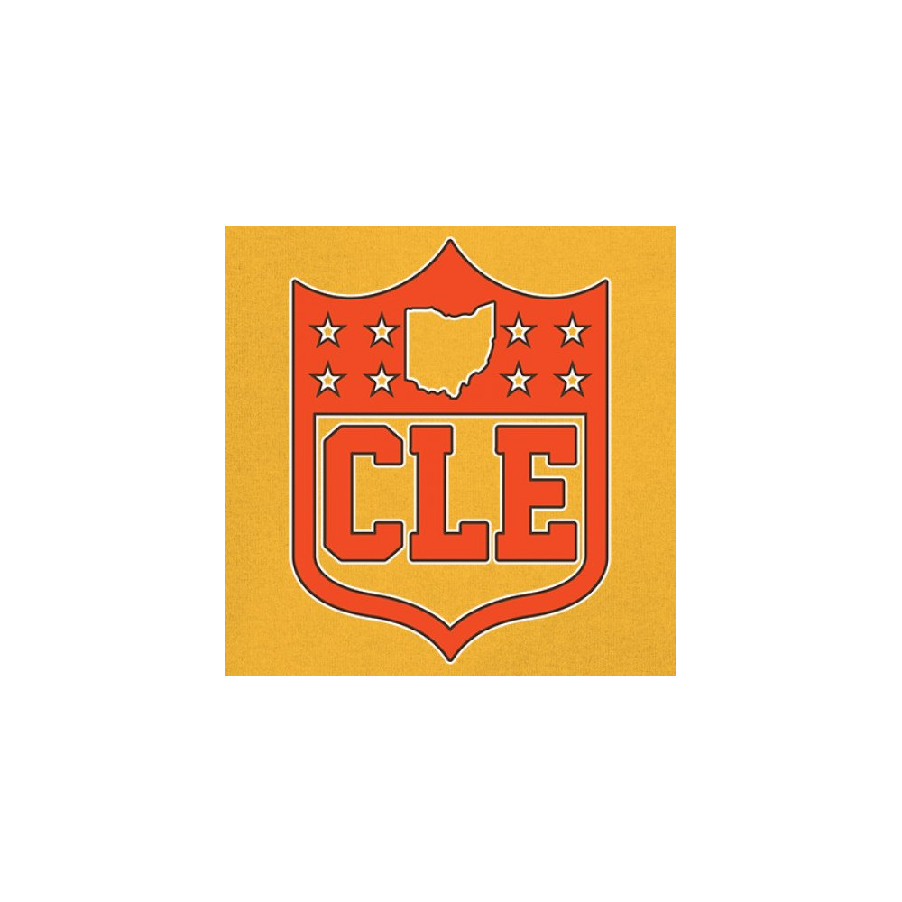 Bold CLE shield design honoring Cleveland football nation with Rust Belt pride, underdog grit, and blue collar sports heritage.