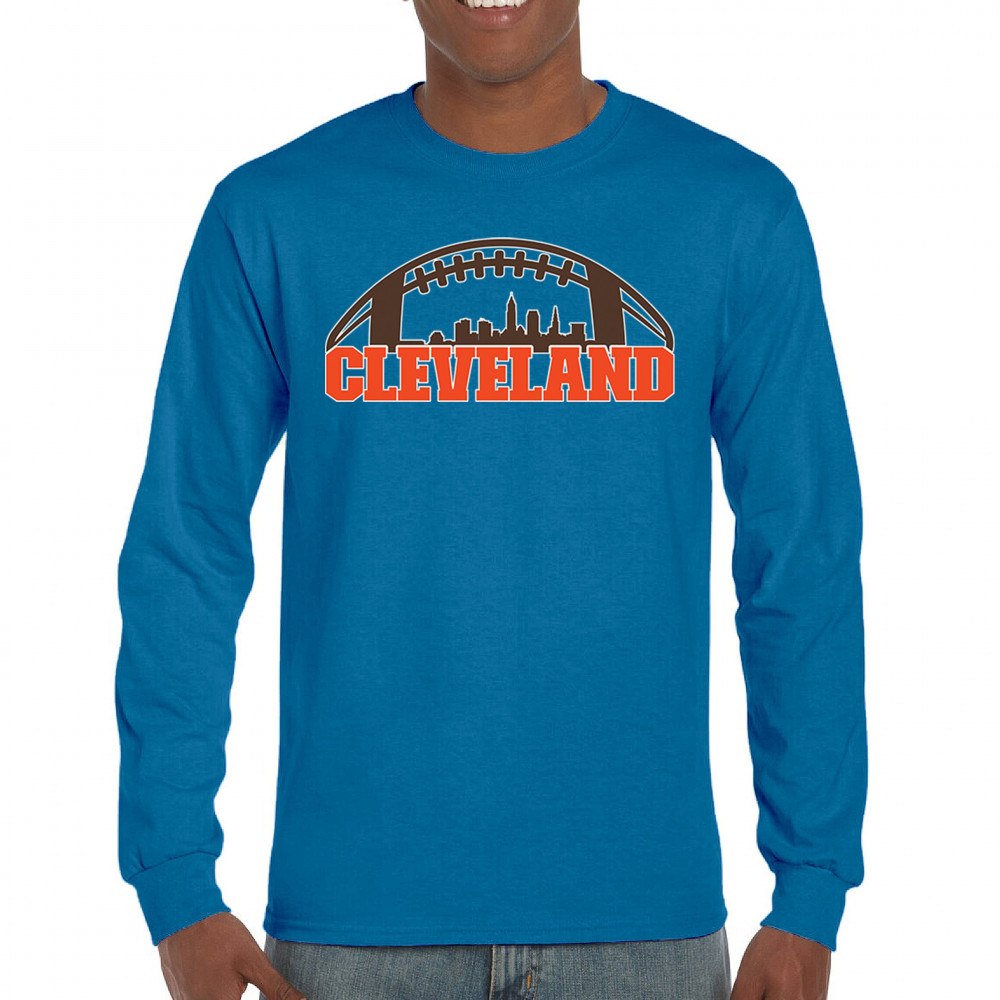 Unleash your Cleveland spirit with this standout football-themed design, featuring the city's skyline in bold detail. Ideal for game day celebrations, tailgate parties, or casual wear, this design embodies the energy and pride of Cleveland's sports culture. Whether you're a lifelong fan or just love the city's vibe, this is a must-have for every Cleveland supporter.