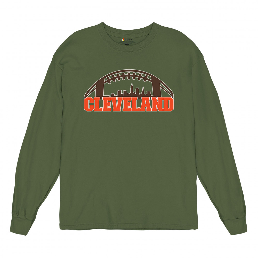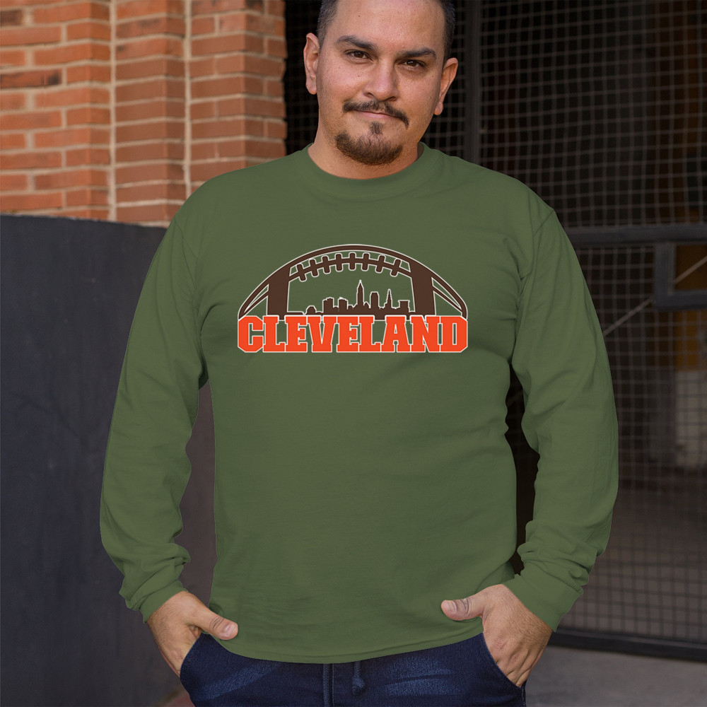 Unleash your Cleveland spirit with this standout football-themed design, featuring the city's skyline in bold detail. Ideal for game day celebrations, tailgate parties, or casual wear, this design embodies the energy and pride of Cleveland's sports culture. Whether you're a lifelong fan or just love the city's vibe, this is a must-have for every Cleveland supporter.