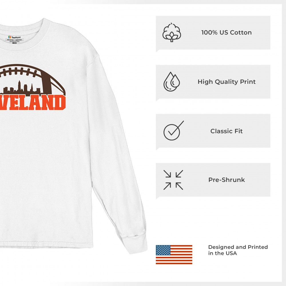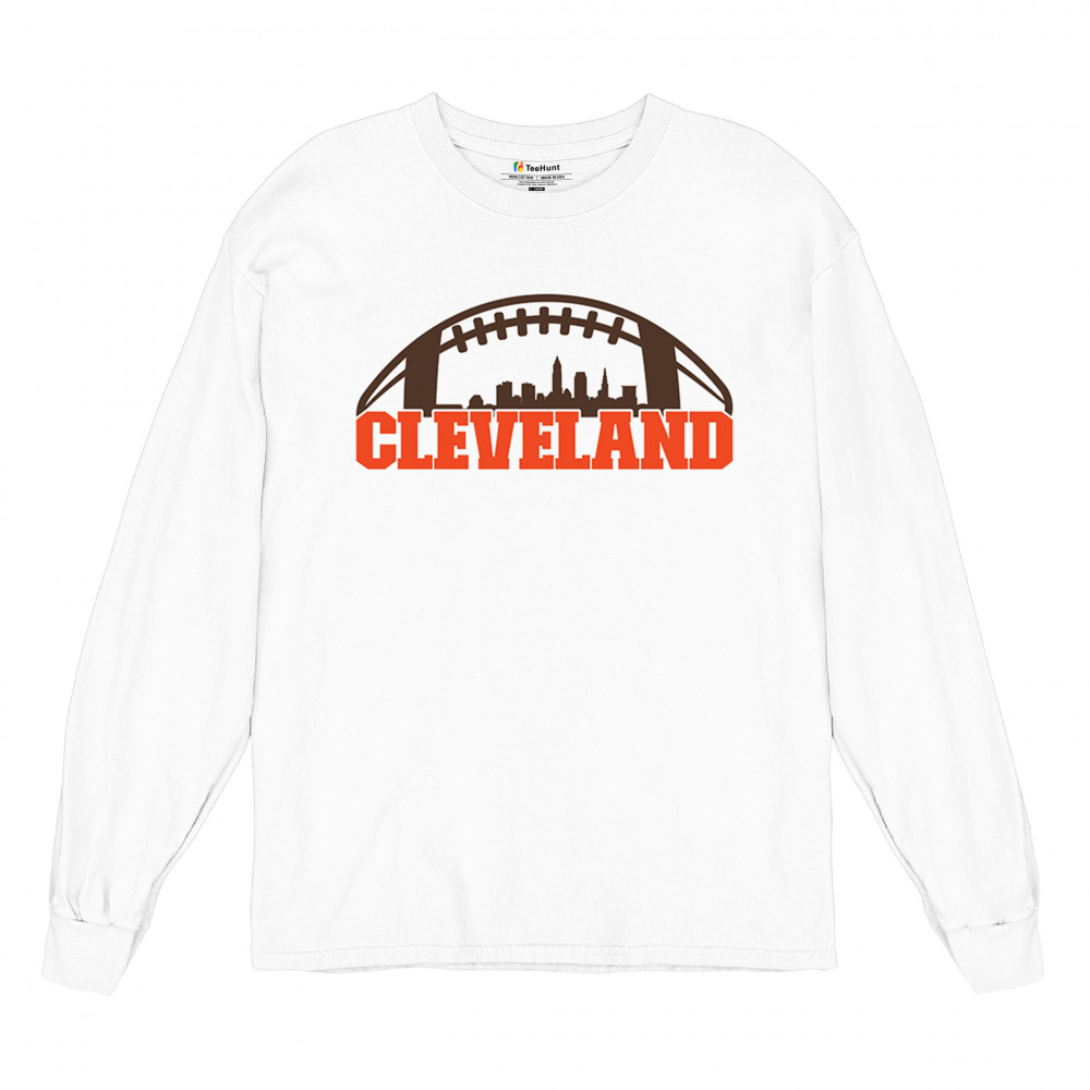 Unleash your Cleveland spirit with this standout football-themed design, featuring the city's skyline in bold detail. Ideal for game day celebrations, tailgate parties, or casual wear, this design embodies the energy and pride of Cleveland's sports culture. Whether you're a lifelong fan or just love the city's vibe, this is a must-have for every Cleveland supporter.