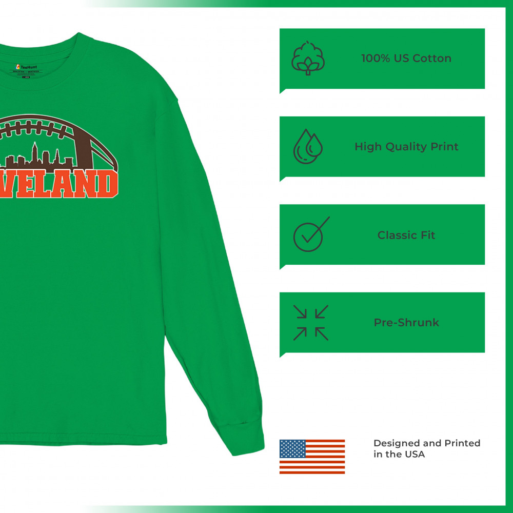 Unleash your Cleveland spirit with this standout football-themed design, featuring the city's skyline in bold detail. Ideal for game day celebrations, tailgate parties, or casual wear, this design embodies the energy and pride of Cleveland's sports culture. Whether you're a lifelong fan or just love the city's vibe, this is a must-have for every Cleveland supporter.