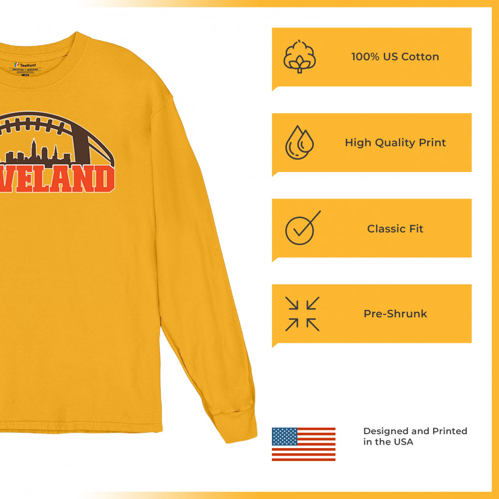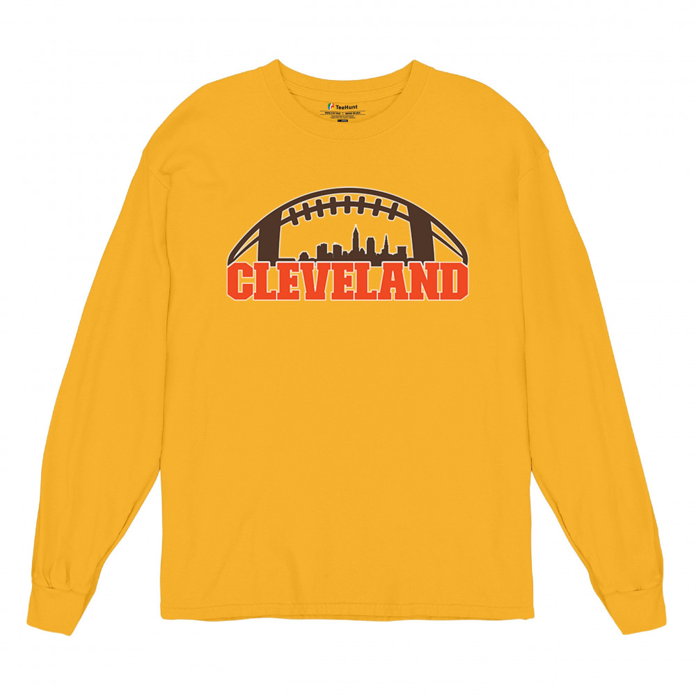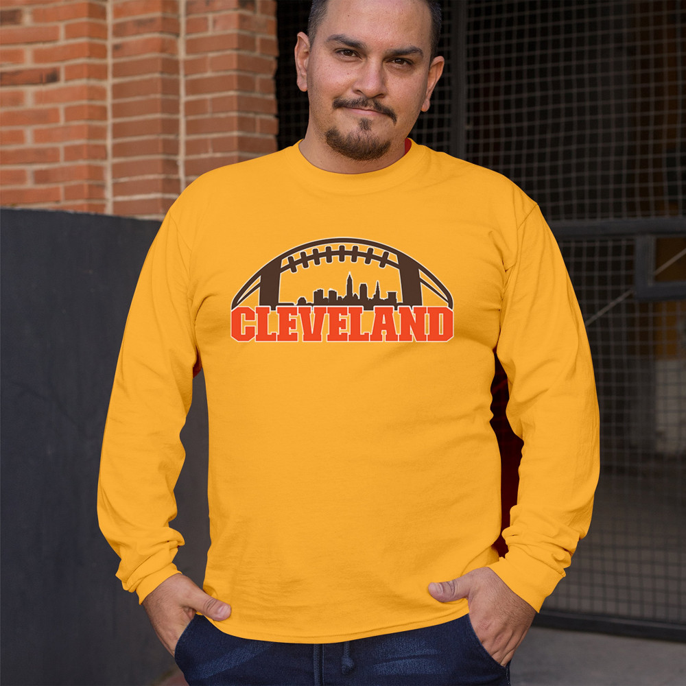 Unleash your Cleveland spirit with this standout football-themed design, featuring the city's skyline in bold detail. Ideal for game day celebrations, tailgate parties, or casual wear, this design embodies the energy and pride of Cleveland's sports culture. Whether you're a lifelong fan or just love the city's vibe, this is a must-have for every Cleveland supporter.