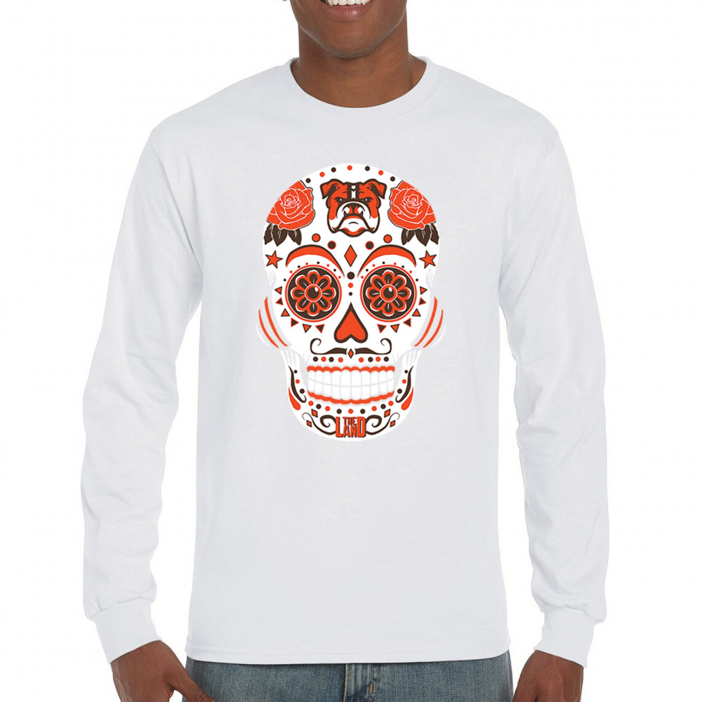 Cleveland football fans can celebrate with this bold Sugar Skull design. Featuring Lake Erie pride, Rust Belt football, and orange & brown heritage, it captures the city’s blue-collar grit and Game Day passion. A perfect calavera for fantasy leagues, playoff energy, and die-hard fan traditions.