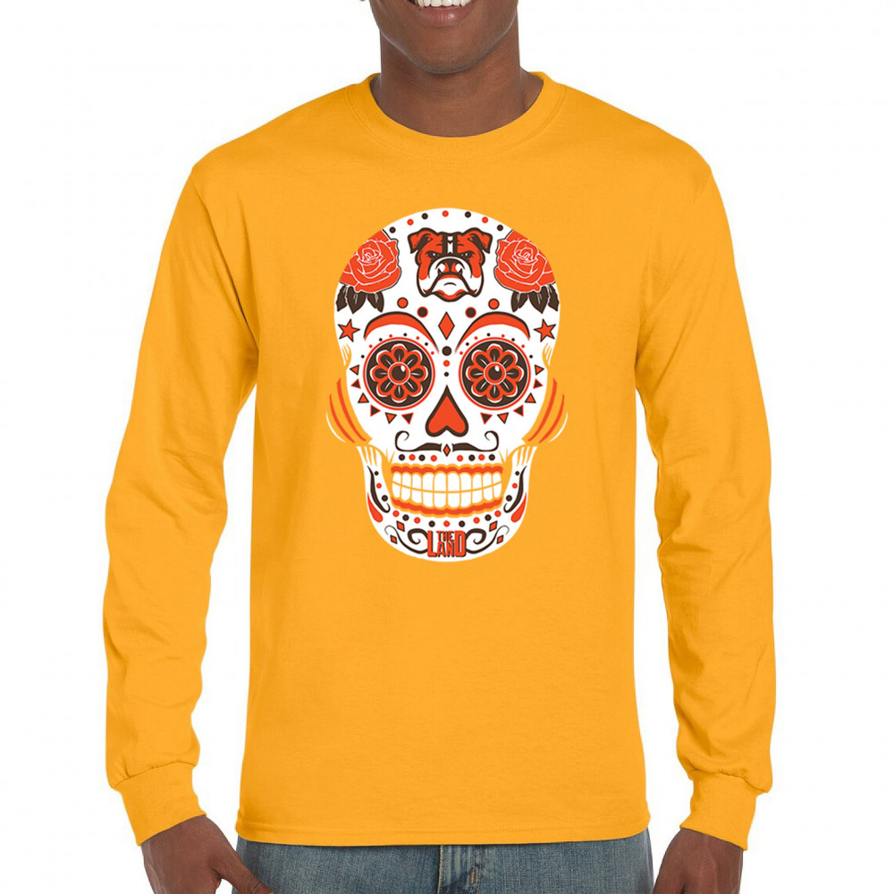 Cleveland football fans can celebrate with this bold Sugar Skull design. Featuring Lake Erie pride, Rust Belt football, and orange & brown heritage, it captures the city’s blue-collar grit and Game Day passion. A perfect calavera for fantasy leagues, playoff energy, and die-hard fan traditions.
