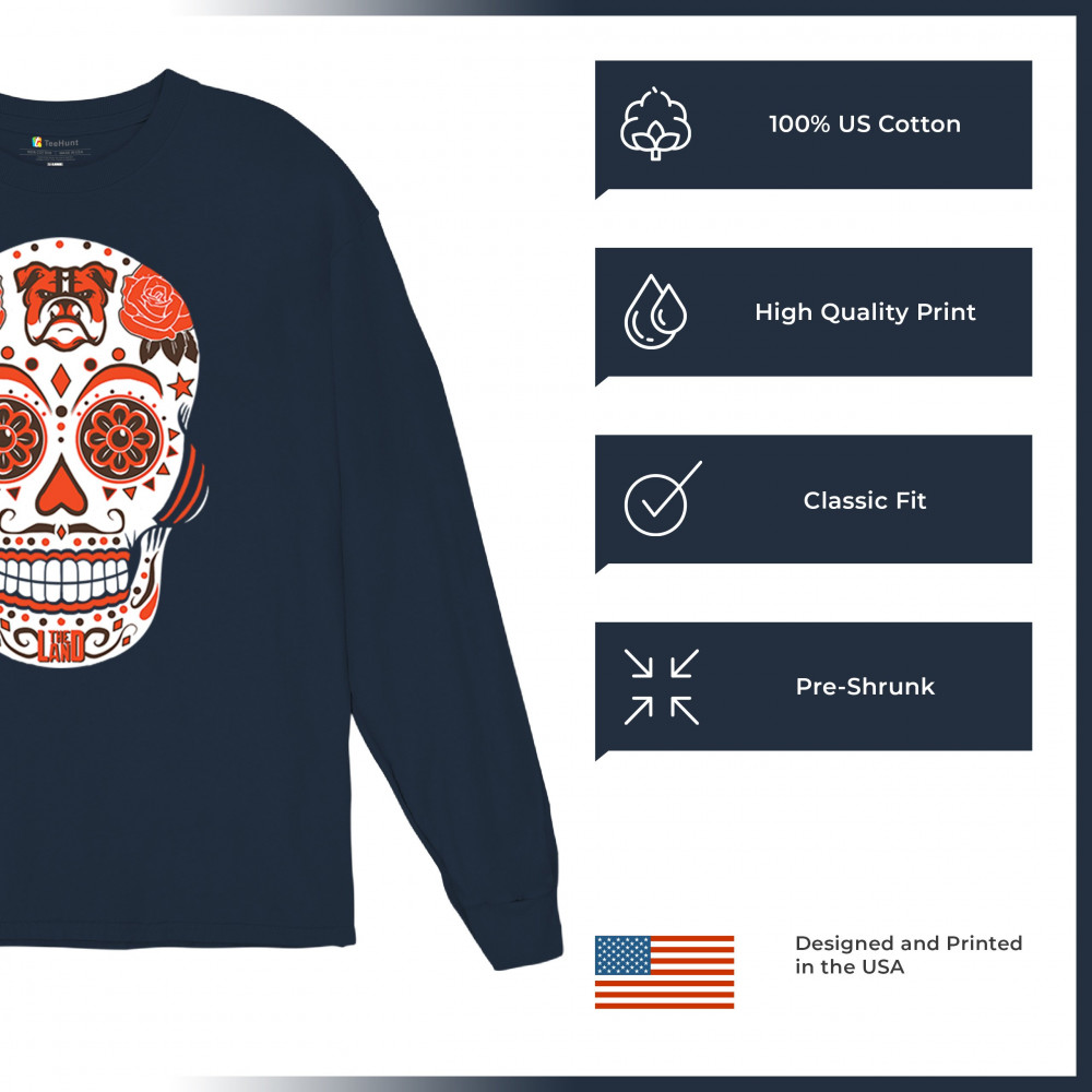 Cleveland football fans can celebrate with this bold Sugar Skull design. Featuring Lake Erie pride, Rust Belt football, and orange & brown heritage, it captures the city’s blue-collar grit and Game Day passion. A perfect calavera for fantasy leagues, playoff energy, and die-hard fan traditions.